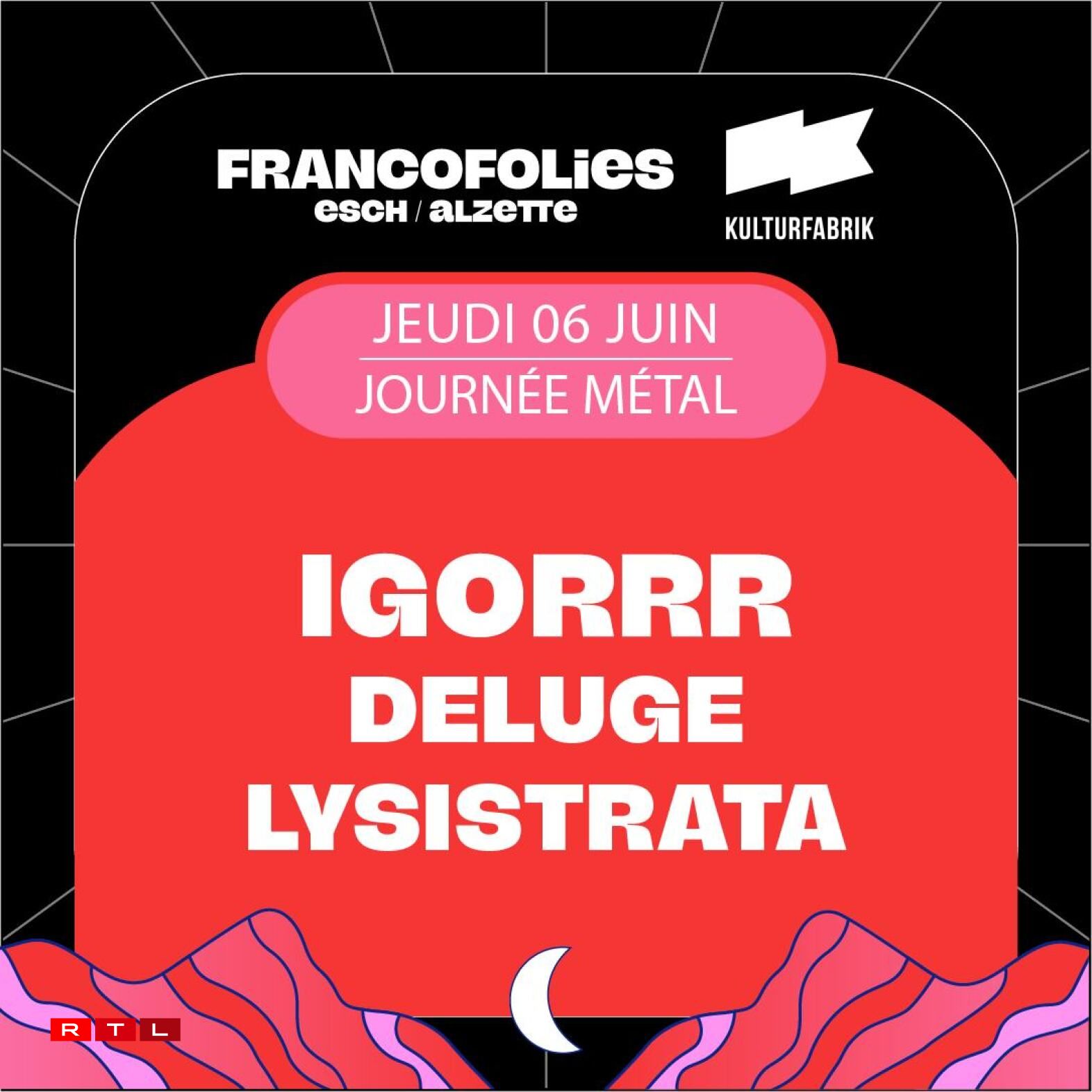 Les festival débutera le jeudi à la Kulturfabrik par une journée “métal” avec Igorrr, Deluge et Lysistrata !