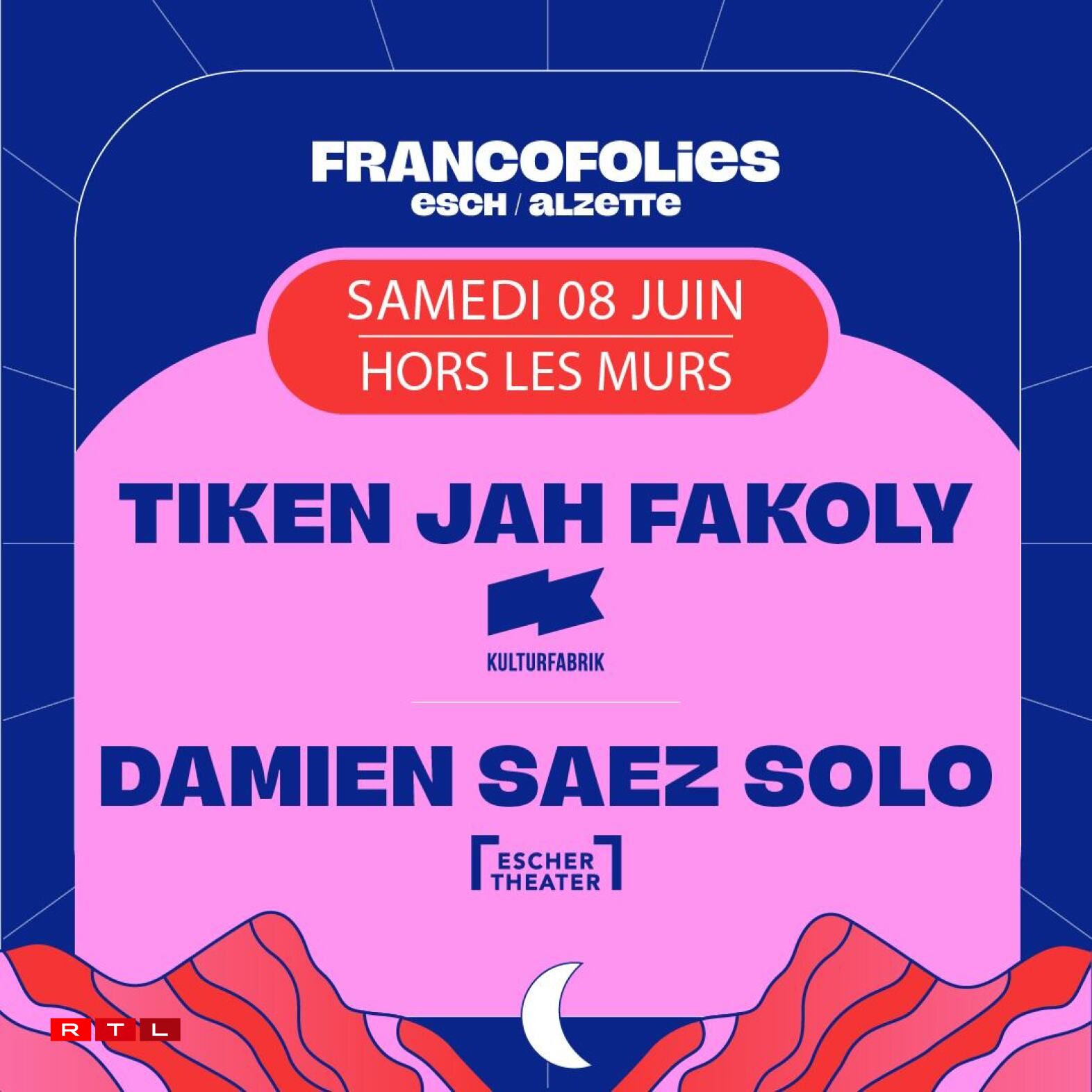Deux concerts hors du parc sont également prévus samedi: Tiken Jah Fakoly à la Kulturfabrik et Damien Saez en solo au Escher Theater.
