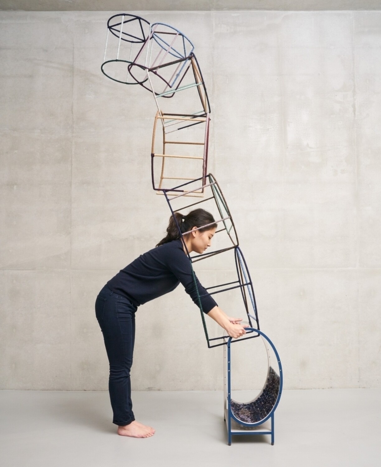 La présentation de Suki Seokyeong Kang (*1977, Séoul), pensée spécifiquement pour le Jardin des sculptures du Mudam, s’articule autour de deux sculptures, Grandmother Tower tow et Rove and Round face, mate, belly, exposées avec des travaux complémentaires.