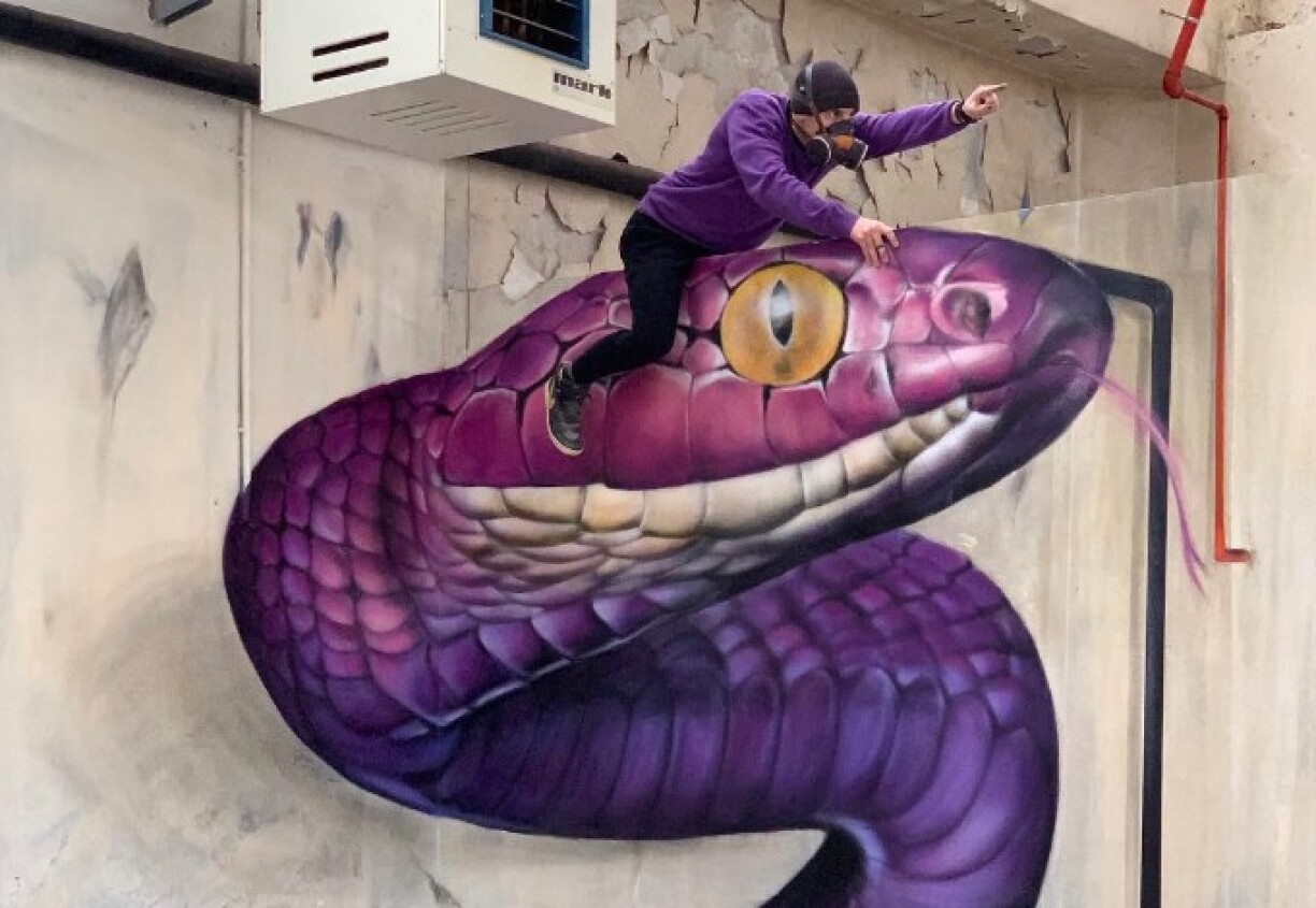 L’artiste graffeur SCAF est connu pour ses dessins 3D troublants de réalisme dans lesquels il se met en scène.