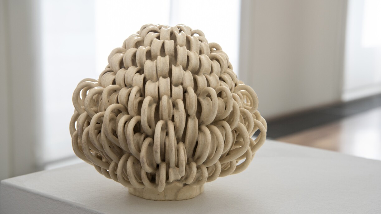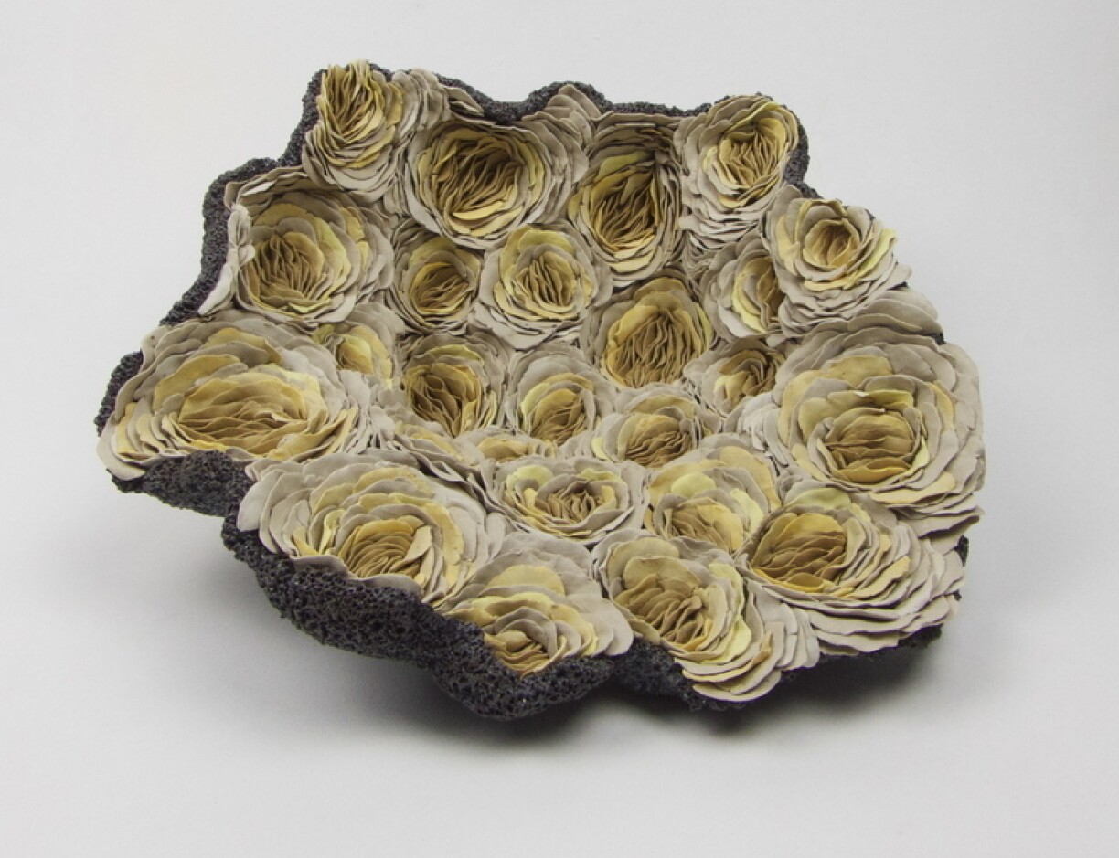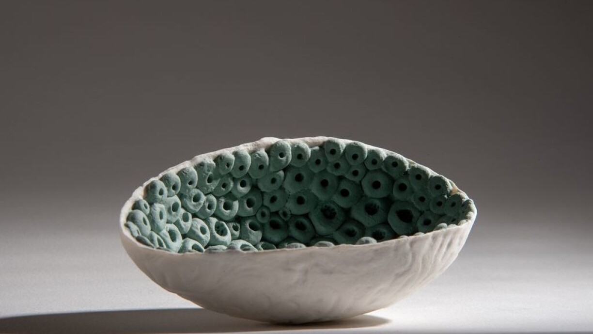 Ellen van der Woude est une céramiste Néerlandaise qui vit et travaille au Luxembourg. Son œuvre est composée de pièces uniques, créées à partir d’empreintes et petits éléments. De façon intuitive elle mélange ses terres et leurs couleurs naturelles pour composer un univers onirique aux allures de fonds marins ou de flore fantastique.