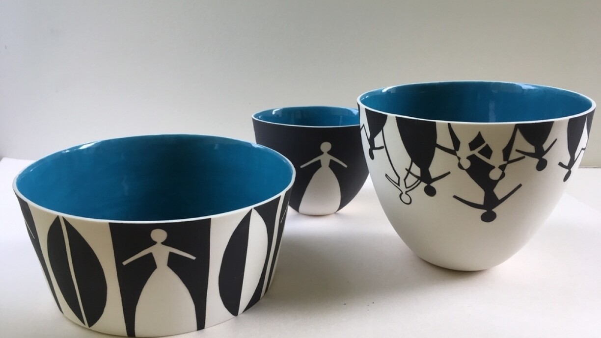 Marianne Steinmetzer vit et travaille à Bridel, Luxembourg. Céramiste, elle privilégie la porcelaine comme moyen d’expression. Ses pièces sont coulées dans des moules en plâtre et décorées aux engobes, les motifs sont peints ou réalisés à l’aide de découpages. D’aspect utilitaire, ses bols ou coupes restent des pièces uniques ou de petites séries.