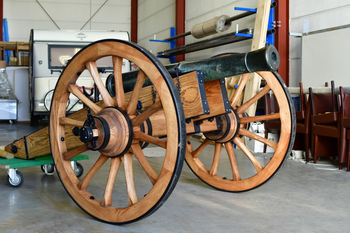 Les deux canons ont été restaurés en Allemagne dans un atelier spécialisé à Bensheim. Ils y ont assemblé minutieusement les parties en bois d’après des images historiques.