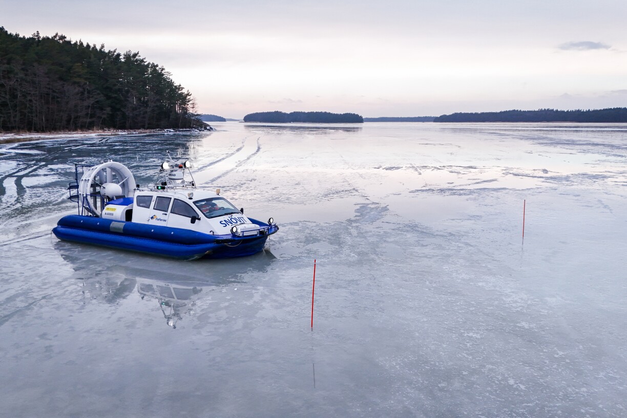 L’aéroglisseur a pu être utilisé pour la troisième fois seulement en 15 ans cet hiver dans l’archipel finlandais.