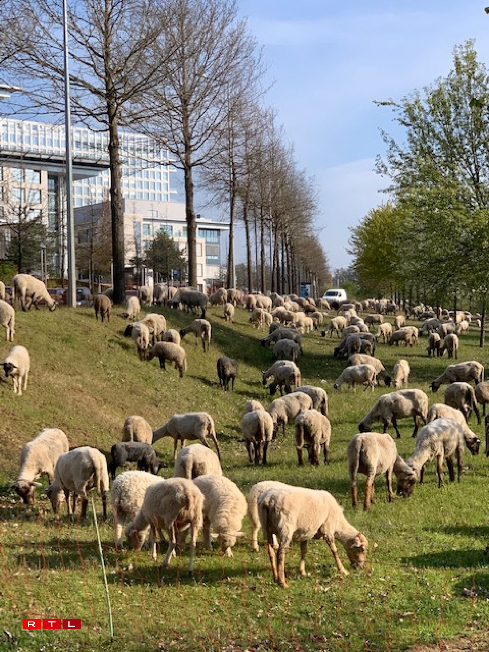 S’agit-il de moutons en quête d’aventure? Sont-ils partis pour “conquérir” le plateau du Kirchberg? Et bien non. Comme nous l’a fait savoir un de nos lecteurs: les moutons ont été réintroduits au Kirchberg sous la forme d’un pâturage itinérant.