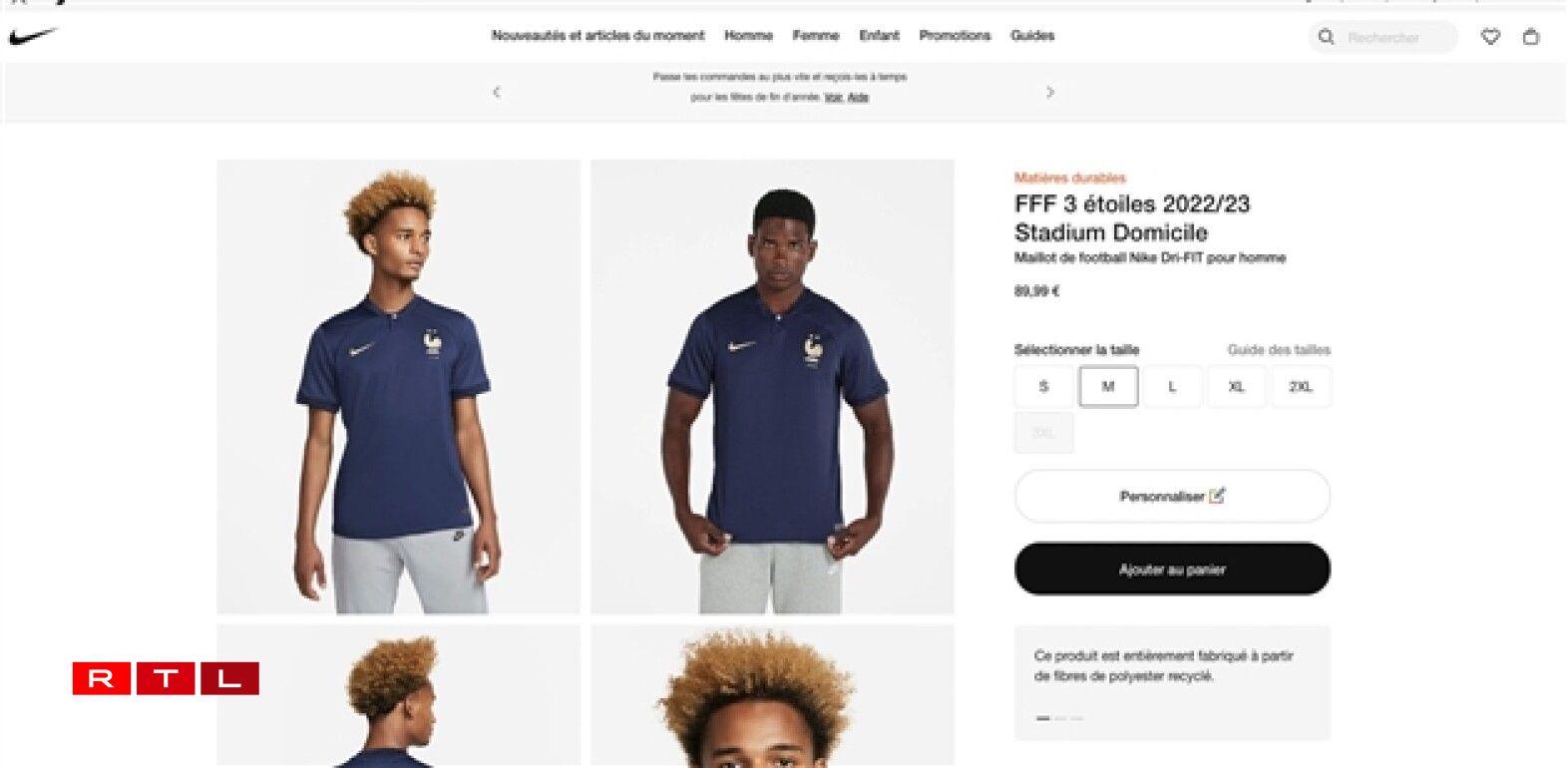 En effet, pendant plusieurs heures, un lien sur le site de la marque permettait de découvrir pour la première fois des maillots disposant des 3 étoiles sur le coeur. Ou plus précisément, le titre du maillot était déjà “FFF 3 étoiles”, mais la vareuse n’avait pas encore de nouvelle étoile brodée.