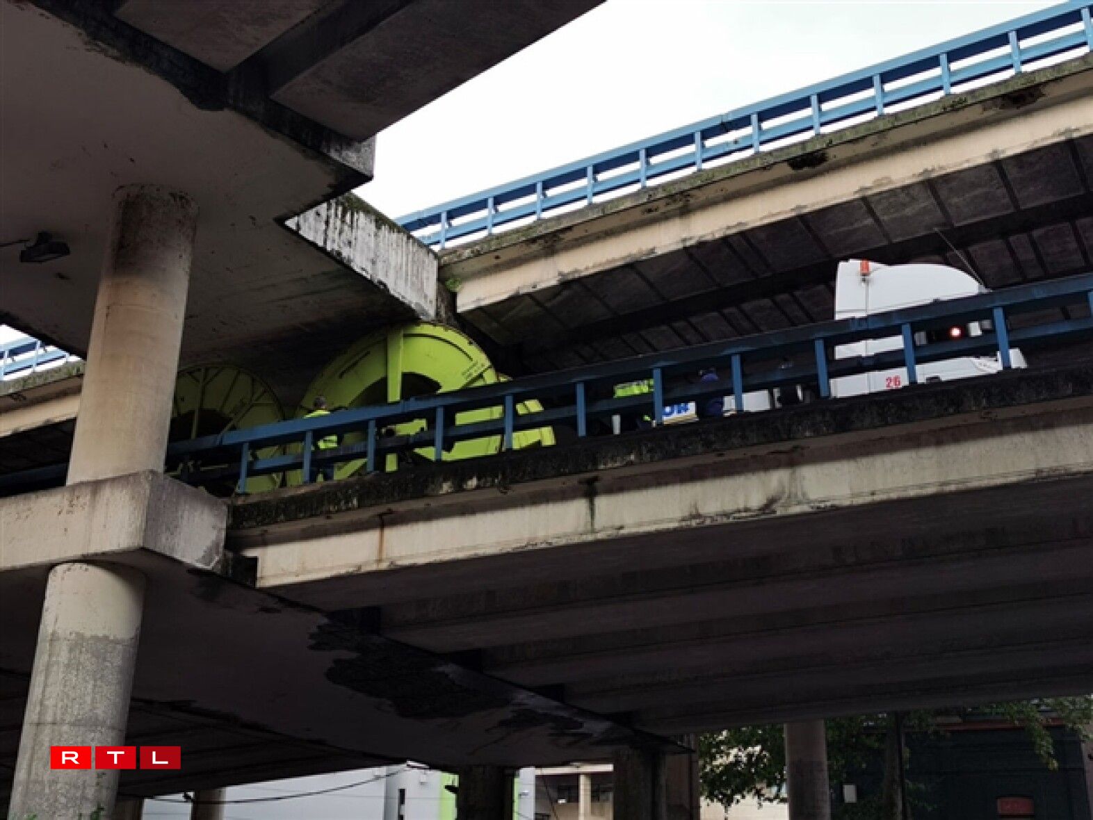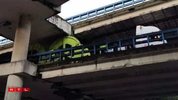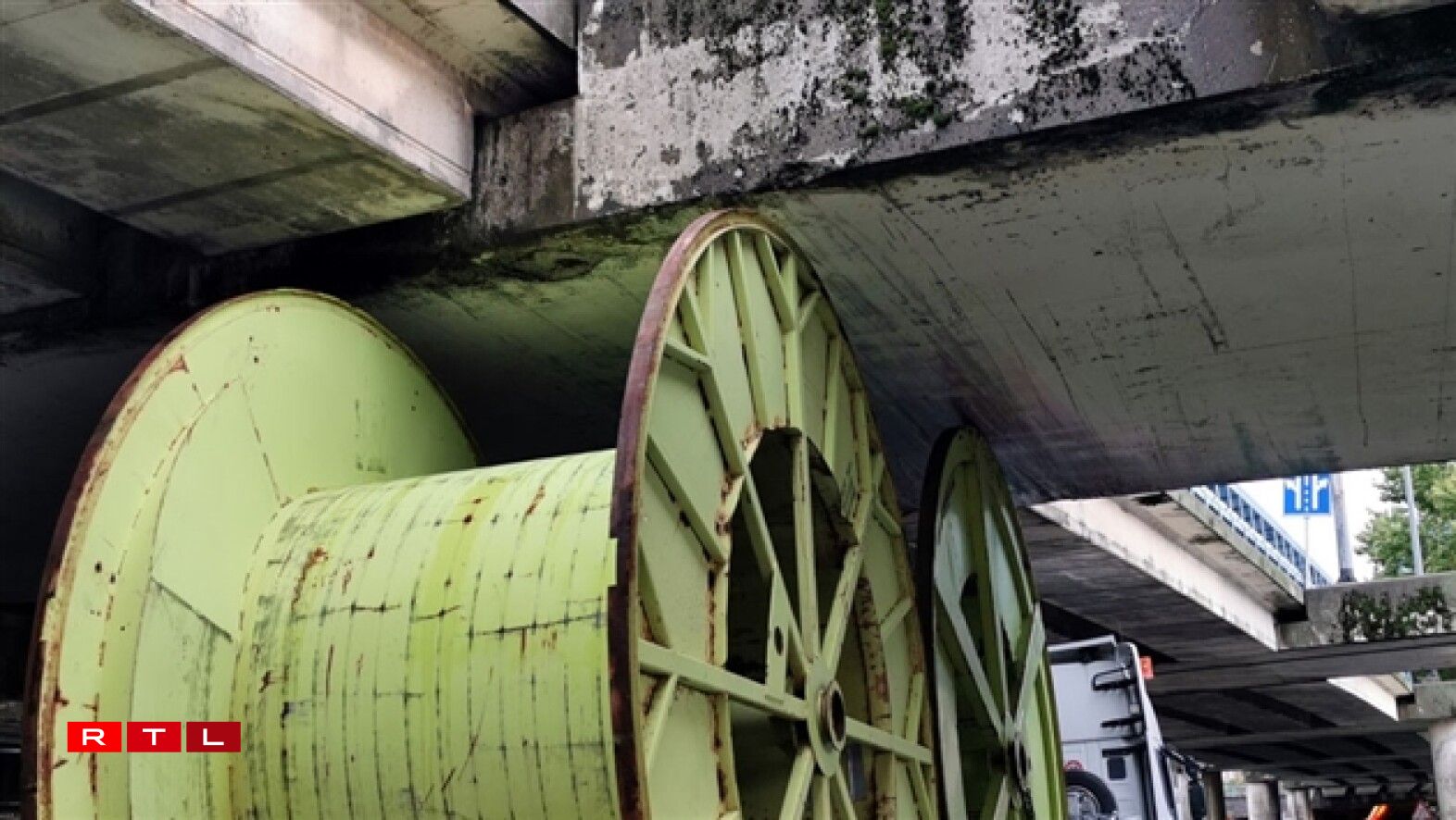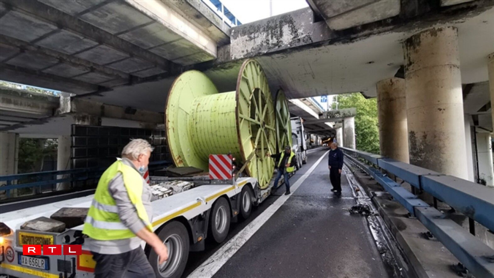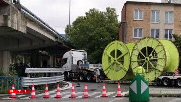 Ce convoi exceptionnel transportant de grandes bobines industrielles en métal s’est bloqué dans une portion assez basses de la route, passant précisément sous le ring avant d’y monter.