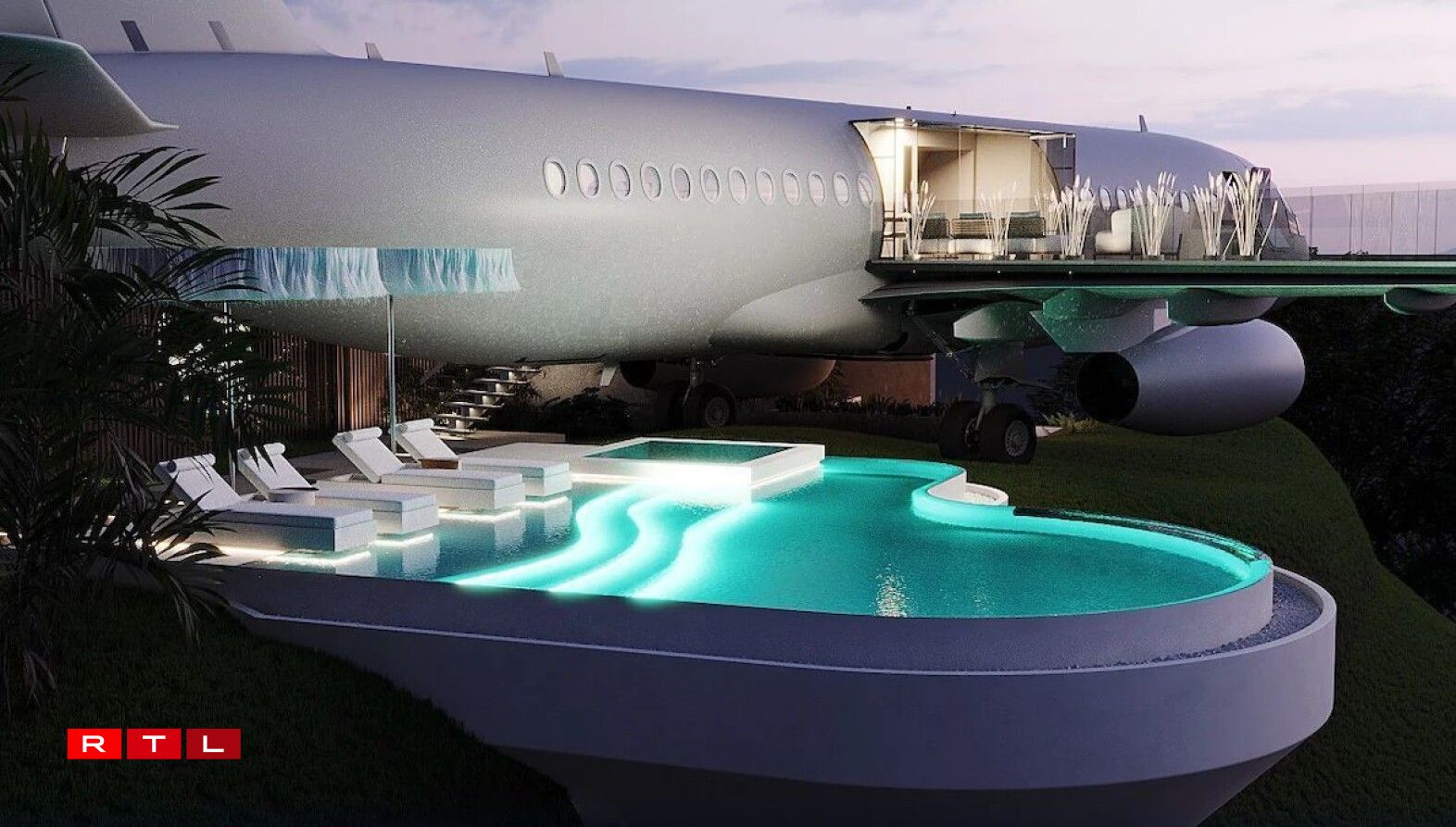 Cette villa insolite de 80m2 propose deux chambres à coucher grand-luxe, une piscine privée et une vue imprenable à 150 mètres au-dessus du niveau de la mer. Le lieu dispose d’une magnifique salle de bain installée dans le cockpit, d’un parking, et même d’une piste d’atterrissage pour hélicoptère.