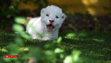 White King, né le 31 mai, est le premier lion blanc à être venu au monde dans un parc zoologique en Espagne.