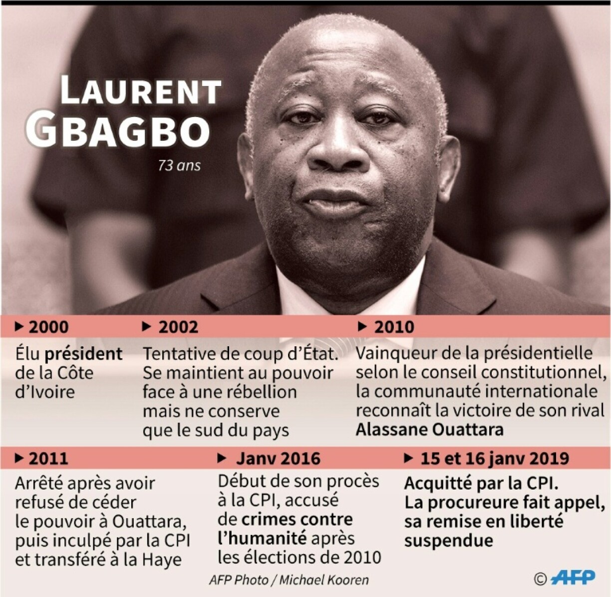 “Répondant à une demande de coopération de la Cour pénale internationale, la Belgique a accepté d’accueillir Laurent Gbagbo”, a déclaré un porte-parole du ministère, Karl Lagatie, précisant ne pas savoir si l’ex président se trouvait en Belgique.
