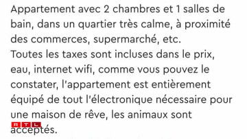 Mais, aveuglé par ce tarif imbattable, on risque de survoler l’annonce (voir ci-dessus), qui comporte plusieurs bizarreries : “Toutes les taxes sont incluses dans le prix, eau, internet wifi, comme vous pouvez le constater, l’appartement est entièrement équipé de tout l’électronique nécessaire pour une maison de rêve, les animaux sont acceptés” peut-on lire. Les taxes et l’eau inclus ? L’électronique nécessaire pour une “maison de rêve” ? (n’était-il pas question d’un appartement d’ailleurs?). Difficile de ne pas suspecter une arnaque.