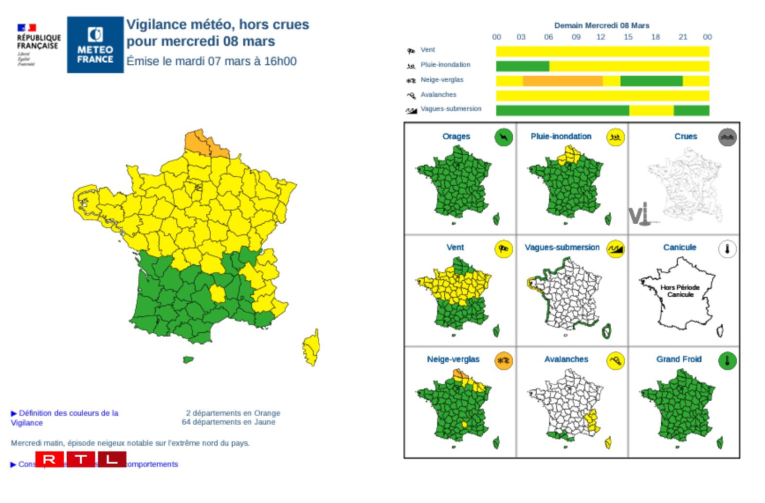 Autant dire que les conditions risquent d’être difficiles sur les routes françaises mercredi matin. Pour ceux qui comptent prendre la voiture, il faudra redoubler de prudence. Si la neige ne tiendra probablement pas au vu des températures annoncées (5 à 7 degrés), des plaques de verglas ne sont pas à exclure.