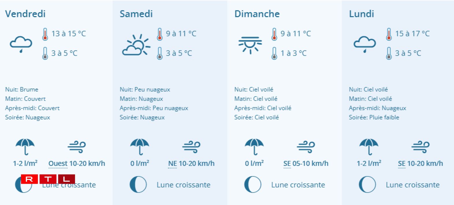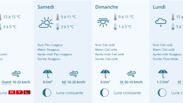 D’après Météolux, on frôlera 0°C ce dimanche matin mais on échappera à ce que l’on considère communément comme une gelée. L’après-midi, les températures remonteront jusqu’à 11°C avant une petite remontée le lendemain malgré de faibles chutes de pluie.