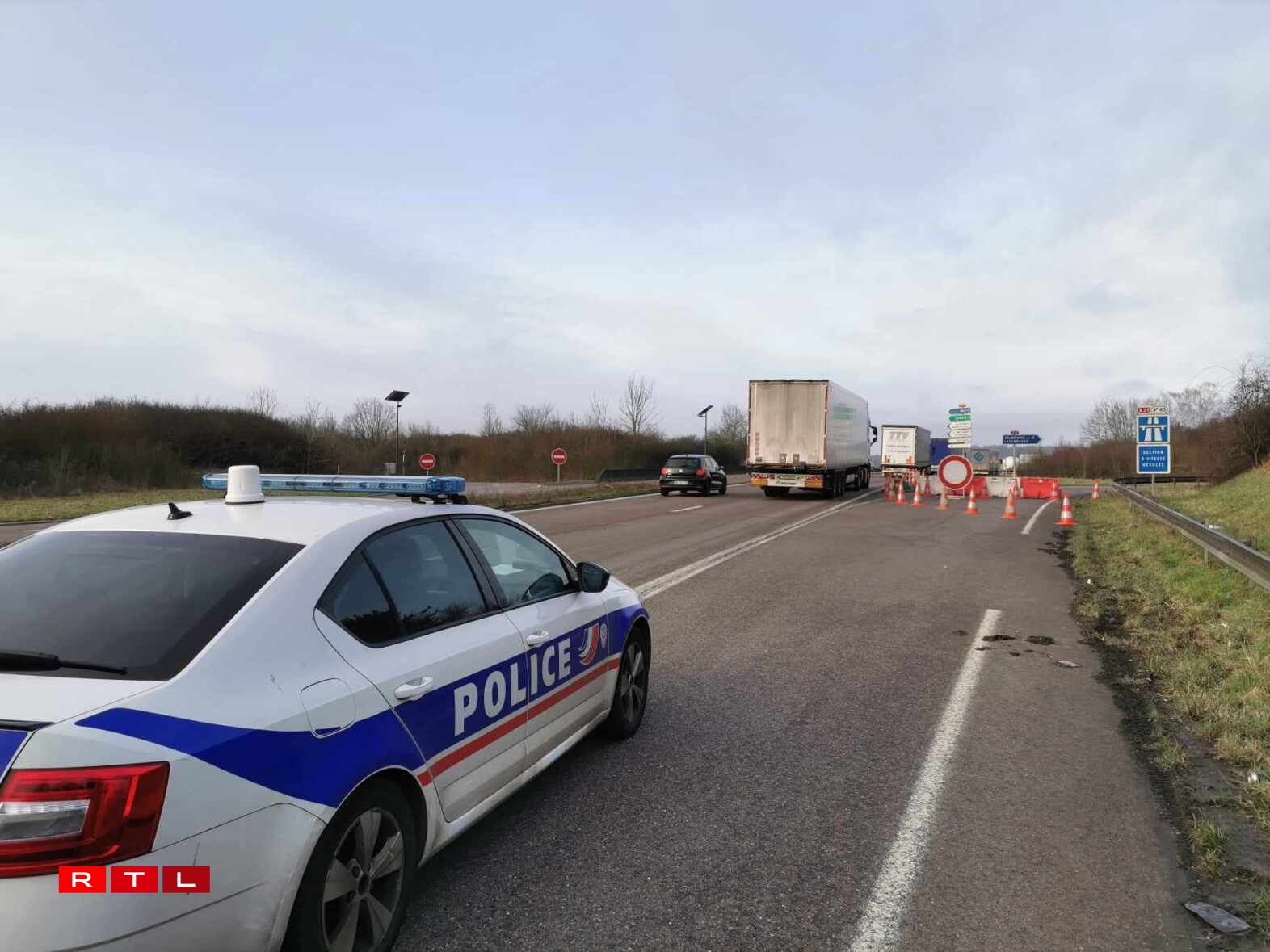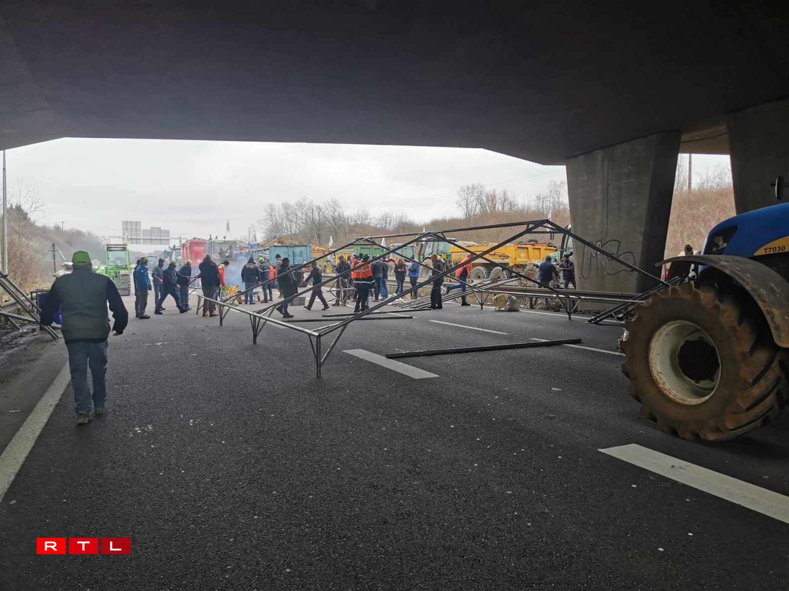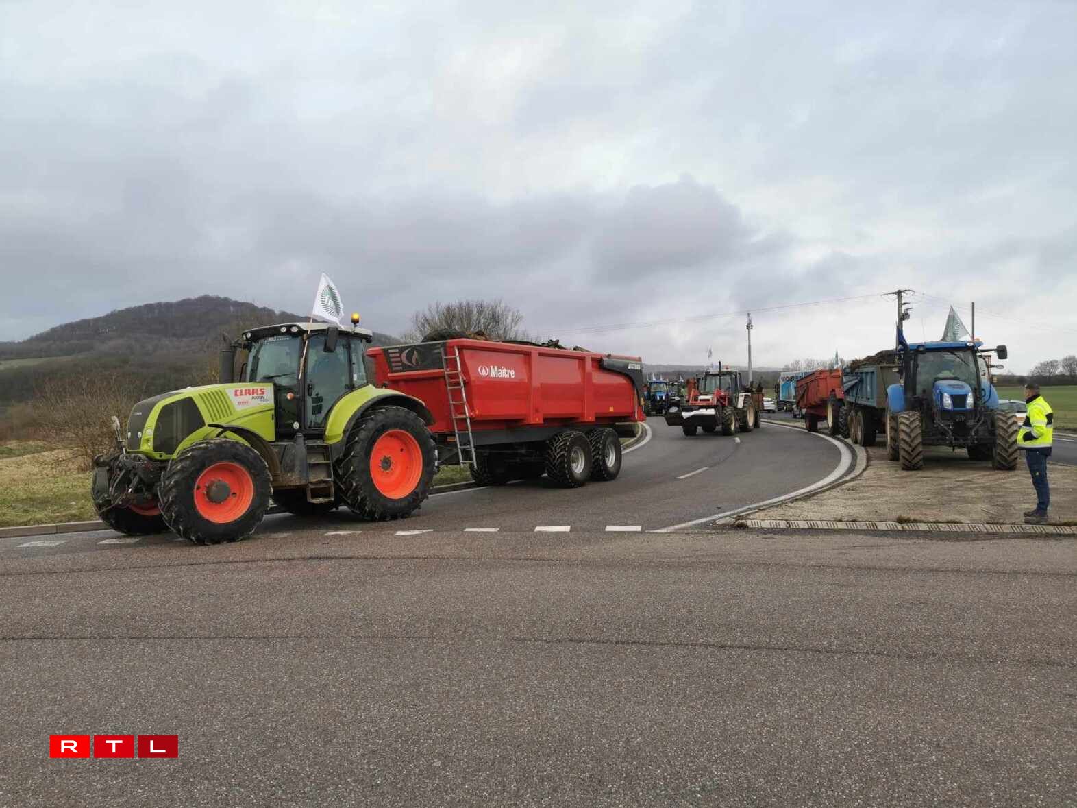 Dès 9h jeudi, la DIR Est a bloqué la bretelle d’entrée 43 à hauteur de Veymerange et la police a redirigé la première vague de véhicules, camions compris, vers la D14 en direction de Longwy. À ce moment-là, les agents de police eux-mêmes ne savaient pas encore où les tracteurs allaient précisément investir l’A31 ni s’ils allaient se déplacer ensuite. Ils ont eu la réponse à 10h20, moment où les premiers engins ont dévalé la D14 dans le sens inverse pour prendre à contresens la sortie 43 menant à Longwy et à Thionville Ouest et se stationner définitivement sur les voies de l’A31, dans le sens Luxembourg - Thionville. À 11h, d’autres tracteurs sont arrivés de Metz, dans le sens opposé, dans un concert de klaxon, les bennes remplies de pneus, de palettes et de fumier. A priori, la cinquantaine d’engins ne bougeront plus de là jusqu’à vendredi 16h.