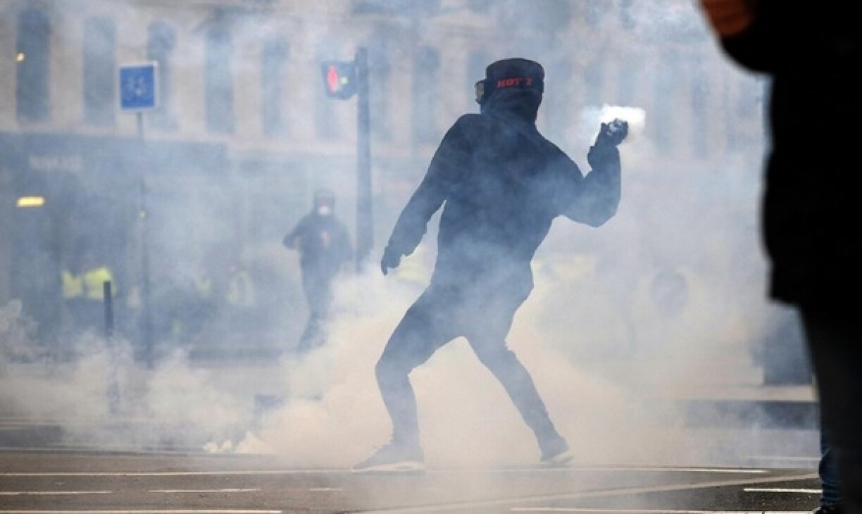 À hauteur de l’Assemblée nationale où le cortège stationne, des manifestants urinent sur les grilles d’enceinte, tentent à plusieurs reprises d’enfoncer en les secouant des hautes palissades qui protègent la façade en travaux de l’Assemblée et lancent des projectiles par dessus, a constaté un journaliste de l’AFP présent à ce moment-là. Les forces de l’ordre répliquent par des tirs de grenades lacrymogènes.