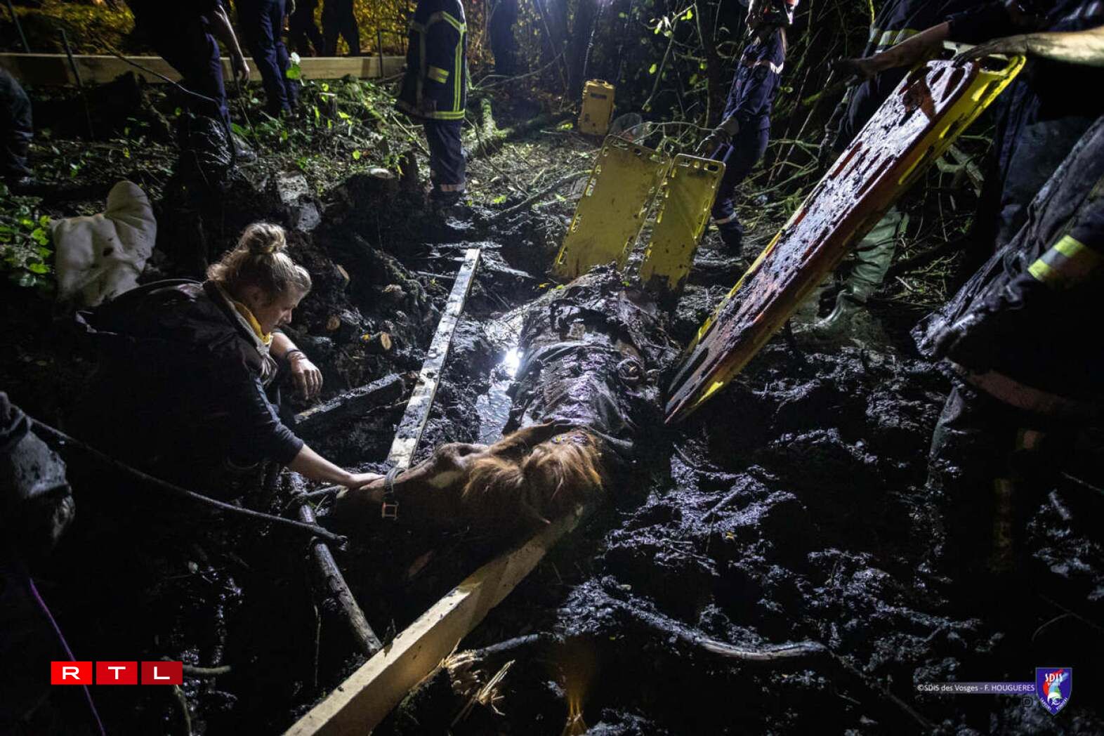 Une quinzaine de pompiers, des spécialistes de déblaiement et une équipe spécialisée en risque animalier ont été mobilisés dans la commune de Frenelle-la-Petite où un cheval a été retrouvé, embourbé jusqu’au garrot.