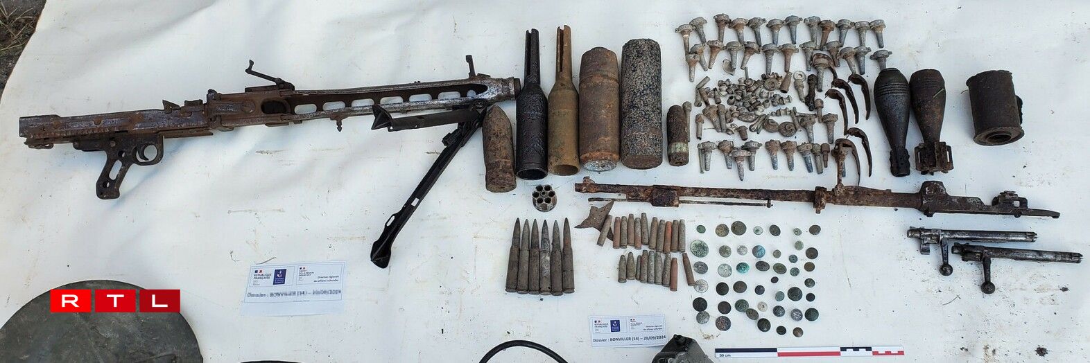 La douane confirme notamment avoir saisi “10 roquettes, 10 détonateurs, plusieurs fusils, 400 kilos de cartouches”. Du matériel très dangereux ayant nécessité l’intervention du service de déminage. “D’autres effets militaires ont été saisis (casques militaires, boucles, ceinturons…), ainsi que plus de 7500 pièces de monnaie, constituant des biens culturels à la valeur patrimoniale certaine.”