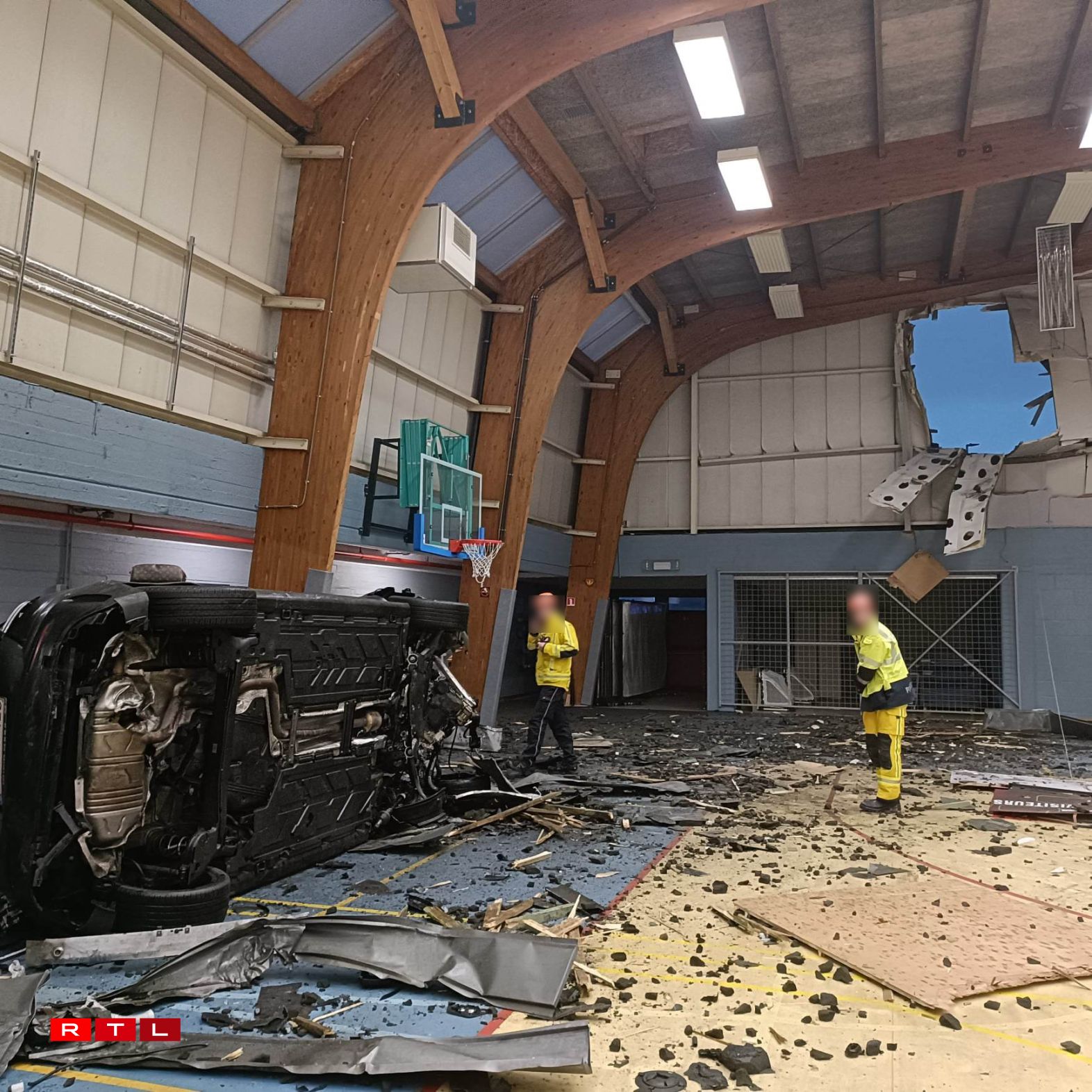 Les circonstances de l’accident restent encore floues mais on sait, grâce à des images de vidéosurveillance, que la voiture impliquée a fait un vol plané qui l’a menée tout droit dans un gymnase.