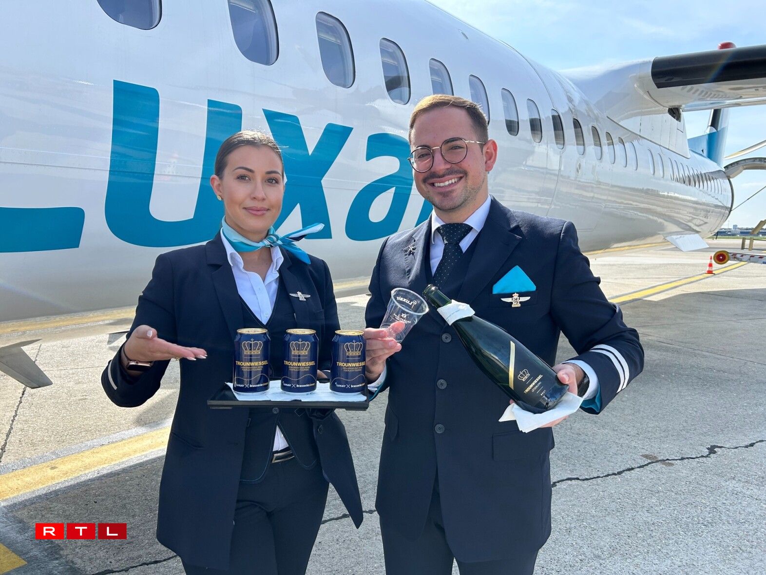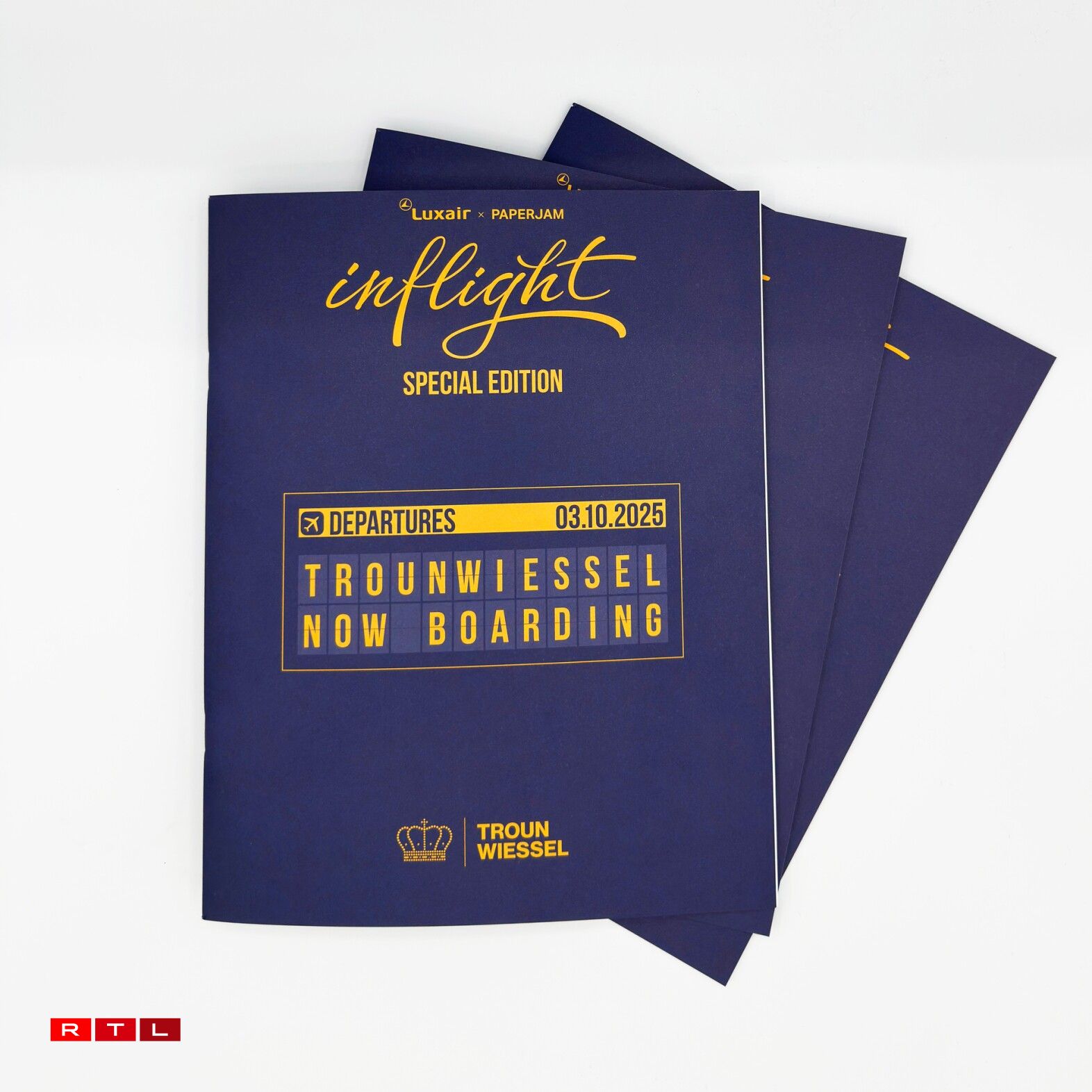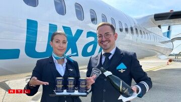 De retour au bureau, un communiqué de Luxair m’avertit que notre compagnie aérienne nationale a également prévu quelques surprises pour ce grand événement. Cela va d’un emblème spécial sur leurs avions à des biscuits et du crémant pendant le vol, en passant par une édition spéciale de leur magazine de bord.