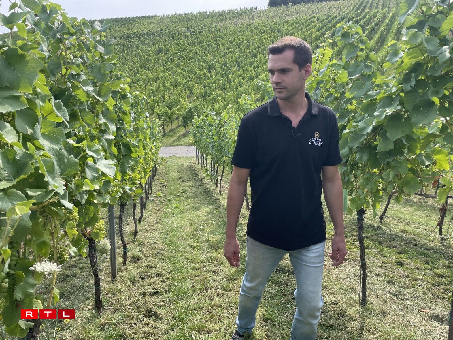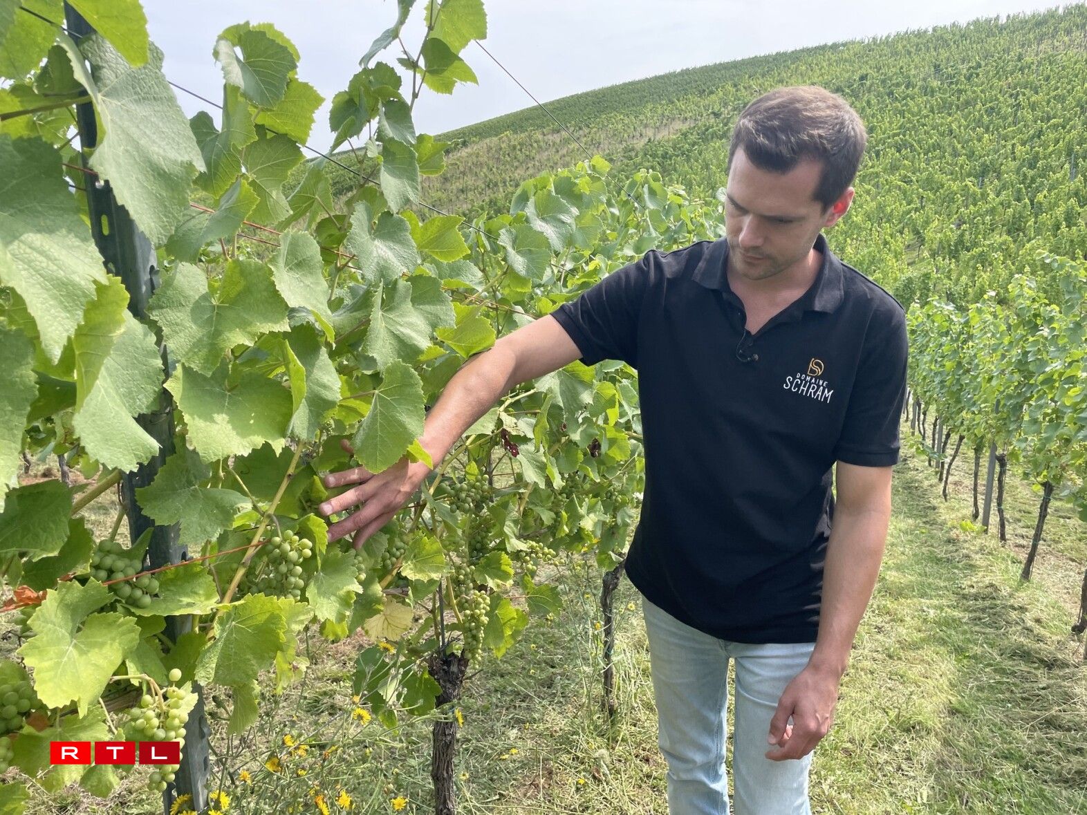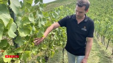 En tout cas, épargnés jusqu’à présent. Ben Schram, viticulteur privé, sait que des grêlons pourraient maintenant lui coûter une partie de ses vendanges. Dans le métier, on apprend cependant vite qu’il faut prendre la météo comme elle vient, qu’on n’a aucune influence. Ben Schram: “Pour nous, l’idéal serait qu’il cesse de pleuvoir pour les cépages Pinot, qui mûrissent plus précocement. Ils n’ont plus besoin d’eau d’ici les vendanges. Pour le Riesling, il pourrait encore une fois pleuvoir ensuite, ce ne serait pas grave. Pour le reste, ce serait parfait que le temps reste juste ensoleillé.”