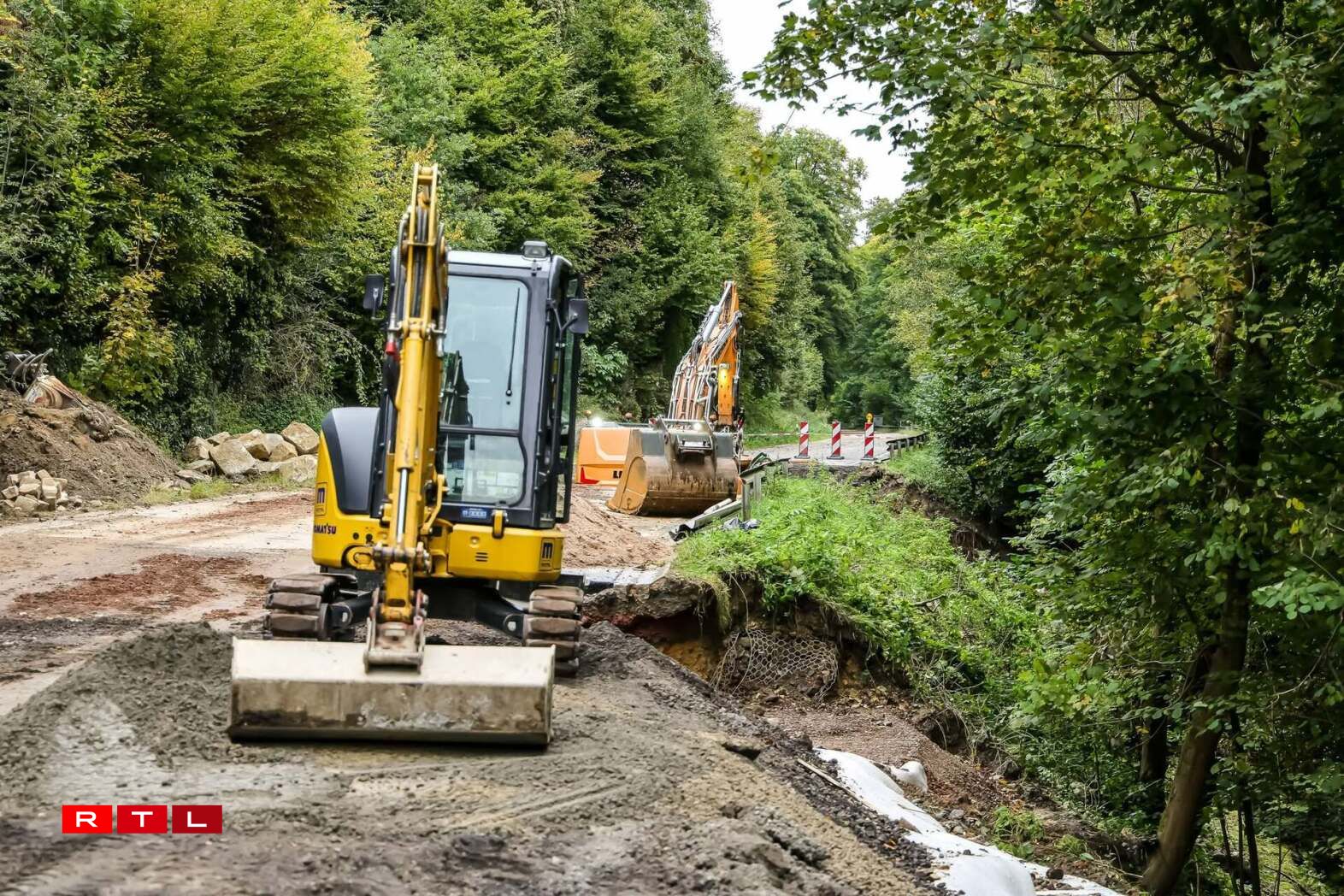 La route est inaccessible depuis les fortes pluies survenues dans la nuit du 8 au 9 septembre dernier. Les eaux de ruissellement avaient alors emporté une partie du sol sous la chaussée, provoquant l’affaissement d’un tronçon. Les Ponts et Chaussées mènent actuellement des travaux de réfection pour rétablir la sécurité de cet axe, essentiel pour les communes de Mersch et Fischbach.