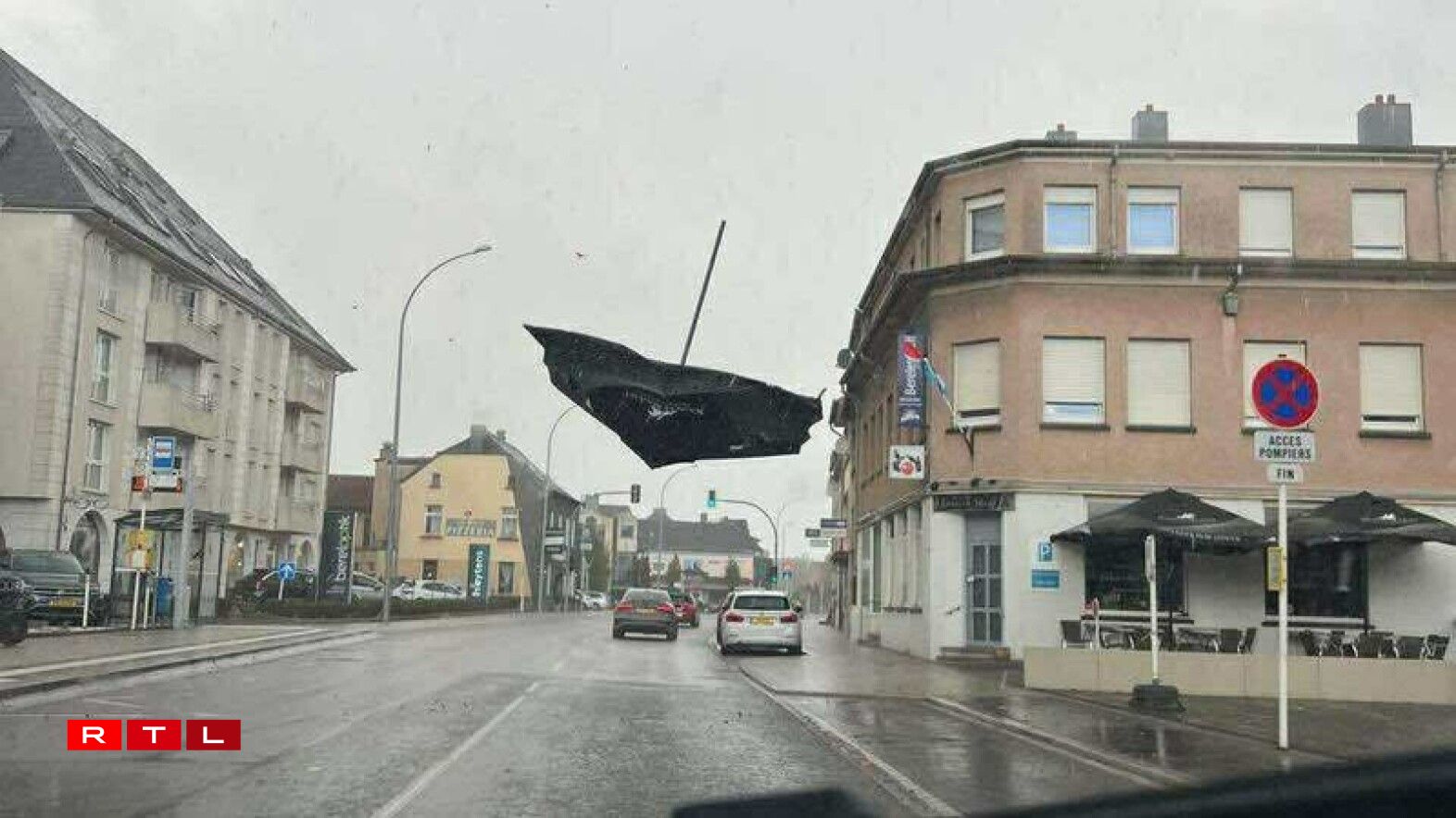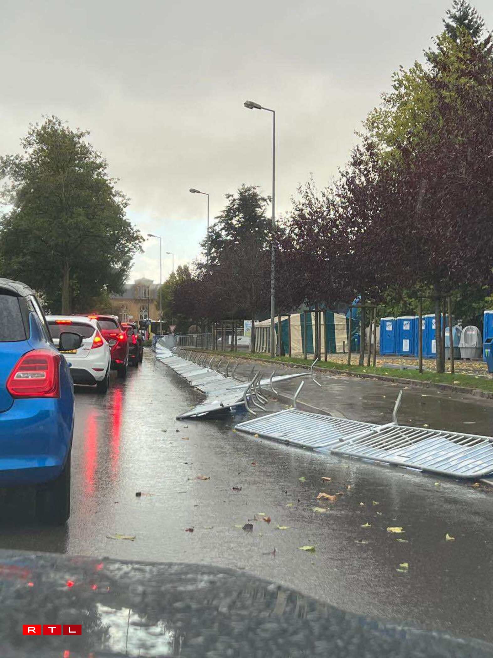 Dans l’après-midi,après une accalmie, le mauvais temps a fait son retour. Vers 16h45, un journaliste de RTL Infos a vu un gros parasol s’envoler littéralement devant lui, traversant la route. Quelques minutes plus tard, c’est toute une rangée de barrières qu’il a aperçu au sol, probablement couchées par le vent.