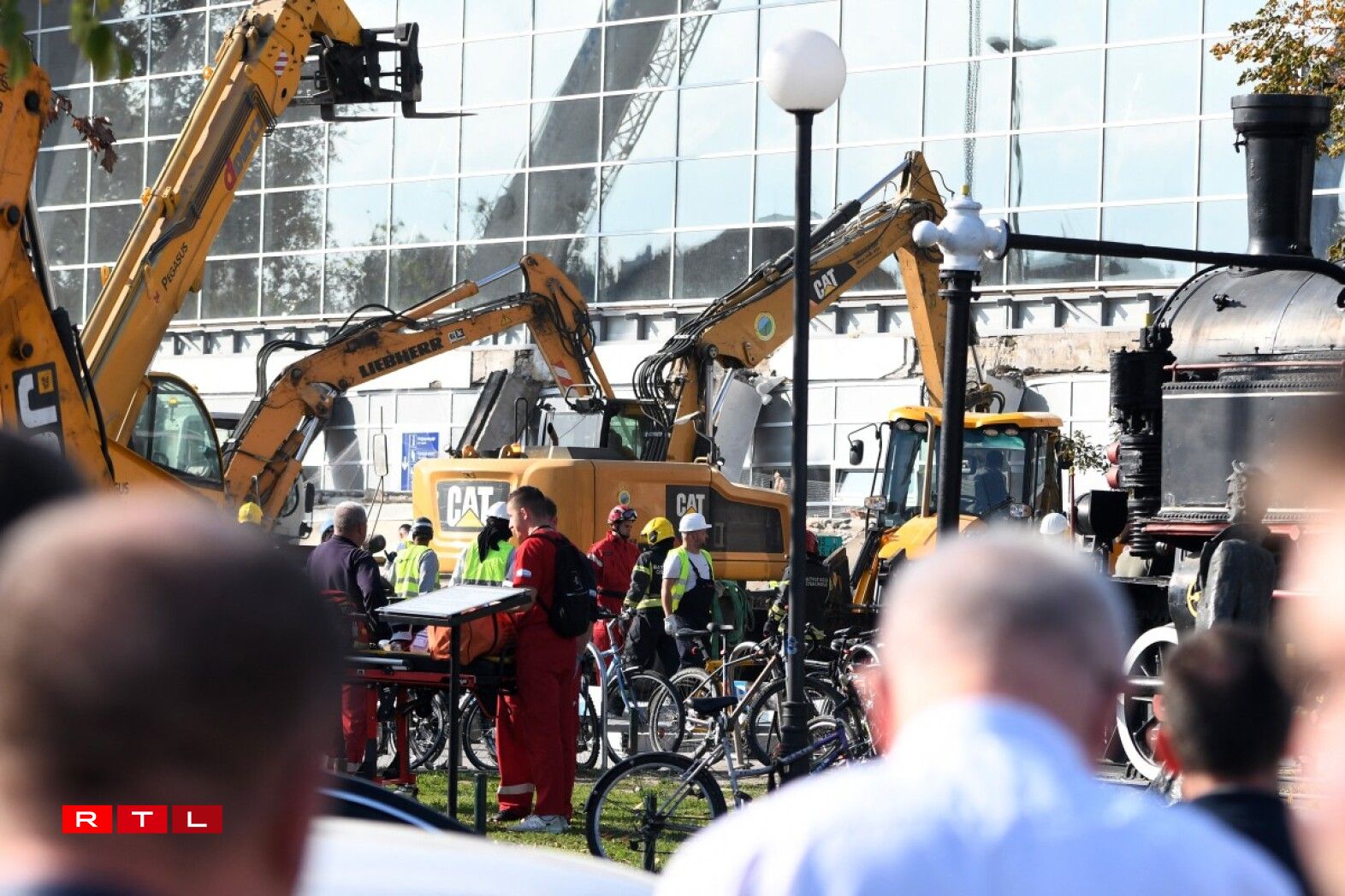 Des vidéos postées sur les réseaux sociaux montrent plusieurs ambulances, un camion de pompiers et des pelleteuses devant la station de train.