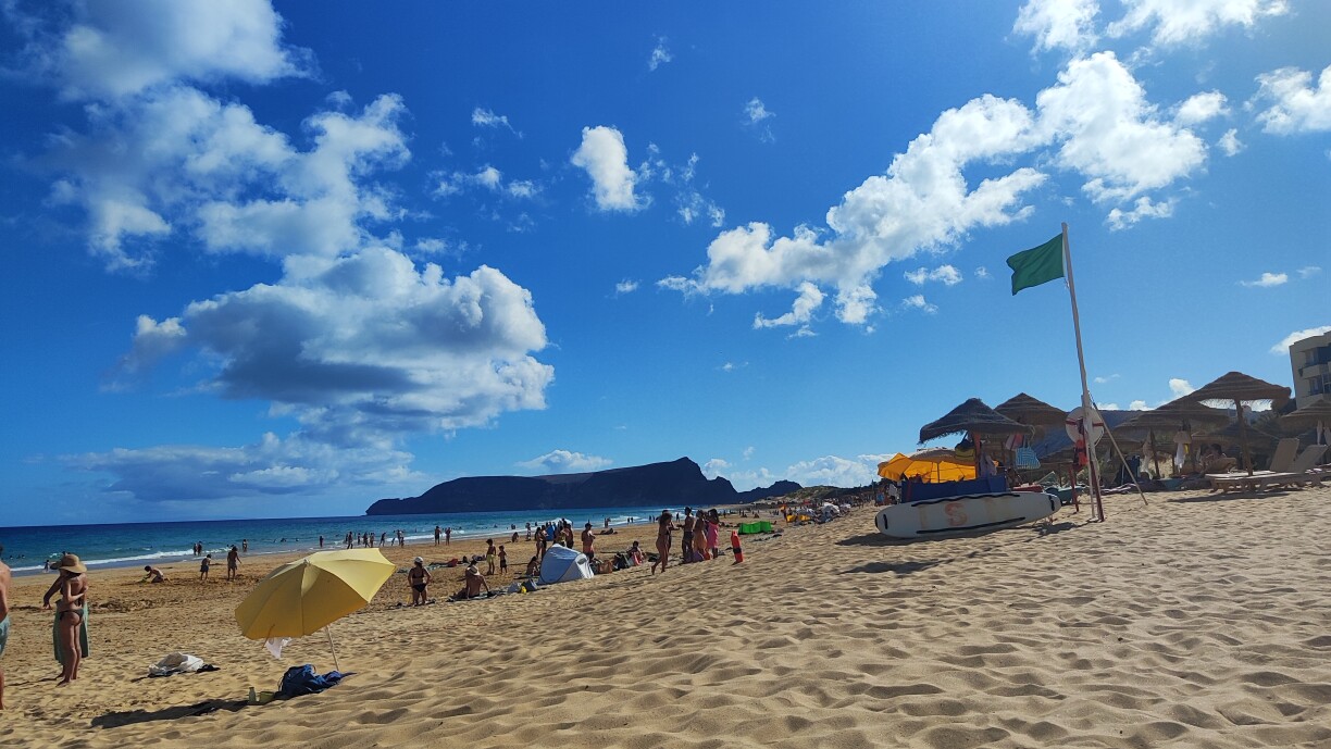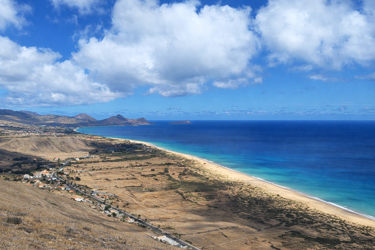 La grande force de Porto Santo, c’est sa plage. Neuf kilomètres de sable doré, continu, sans rupture, où chacun trouve de l’espace même en plein été. L’eau y est douce, la mer calme, et l’ensemble crée une sensation de détente immédiate. Ce littoral n’est pas seulement beau : il est réputé pour ses propriétés thérapeutiques, un atout rare dans l’Atlantique.