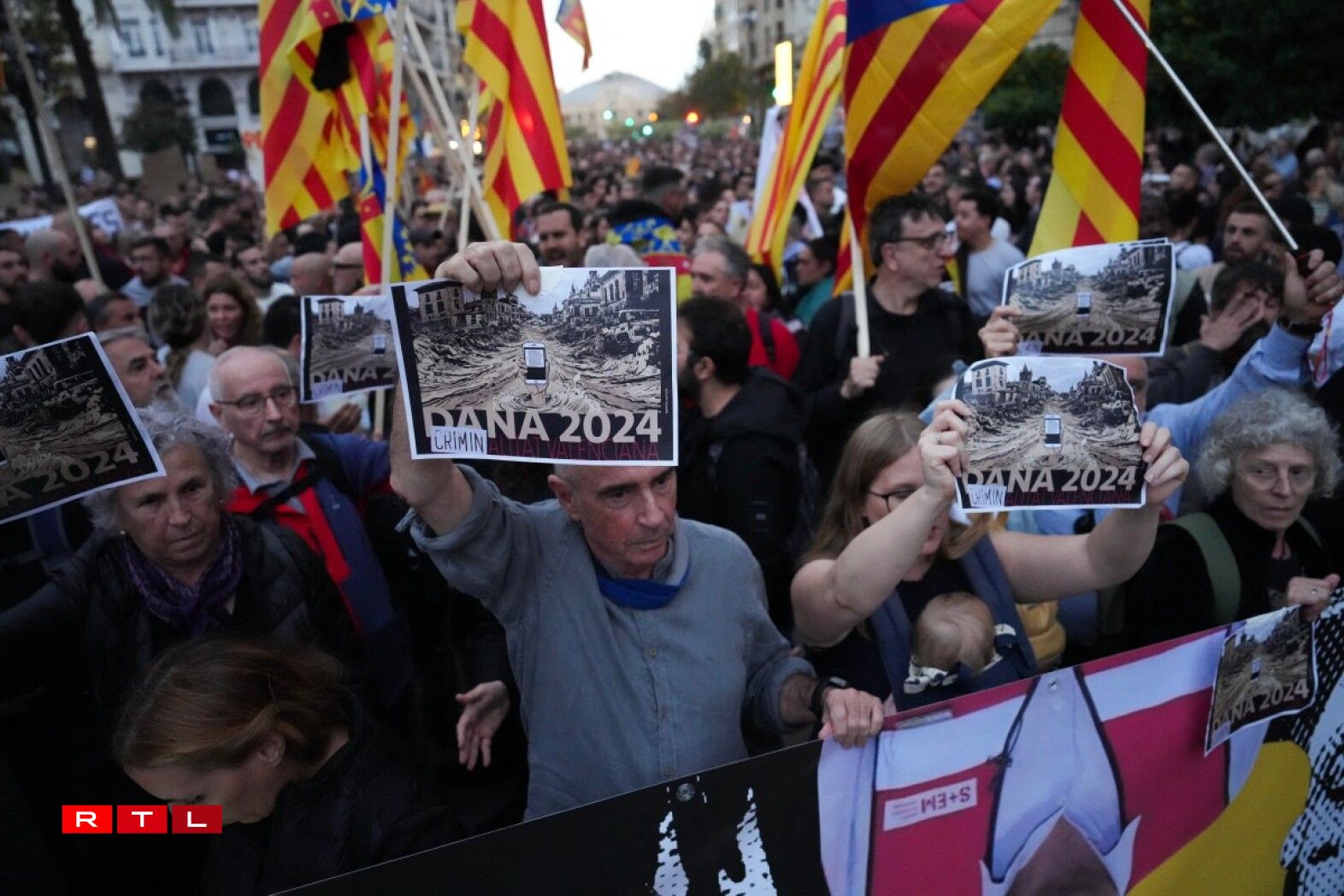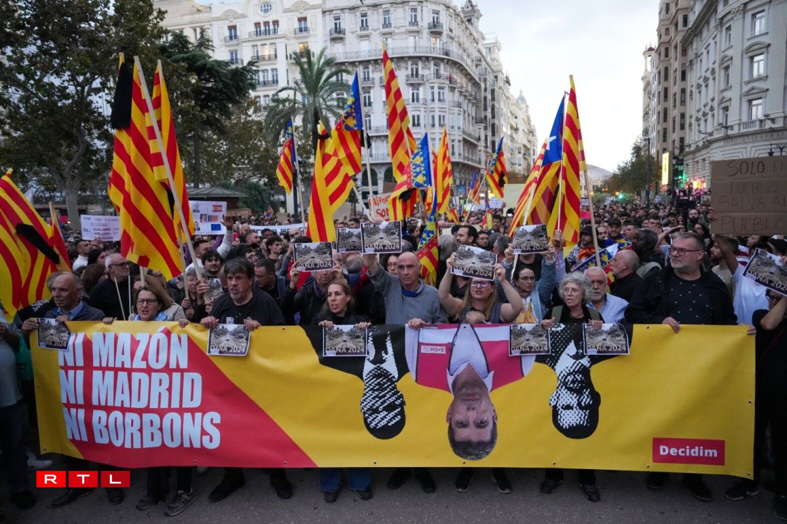 Une grande partie de la colère se concentre sur le président de la région de Valence Carlos Mazón (PP, droite) mais le Premier ministre socialiste Pedro Sánchez n’a pas non plus été épargné par les critiques dans les rangs de la manifestation. Les deux hommes sont accusés d’avoir sous-estimé les risques et mal coordonné les secours après les inondations du 29 octobre.
