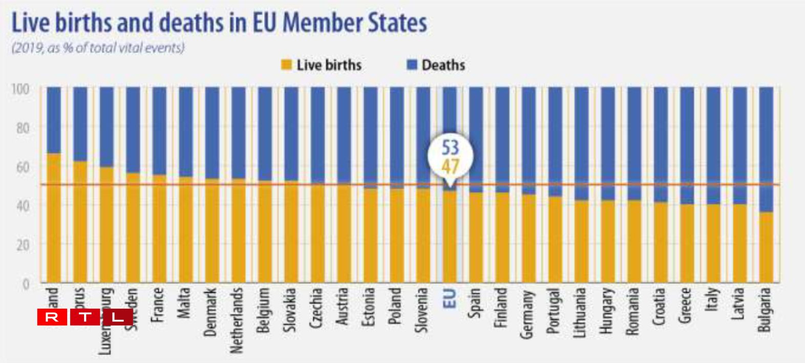 En 2019, 4,2 millions de bébés sont nés et 4,7 millions de personnes sont décédées dans l’UE. Une tendance qui se confirme depuis 2012, où une première baisse de la population européenne avait été constatée.