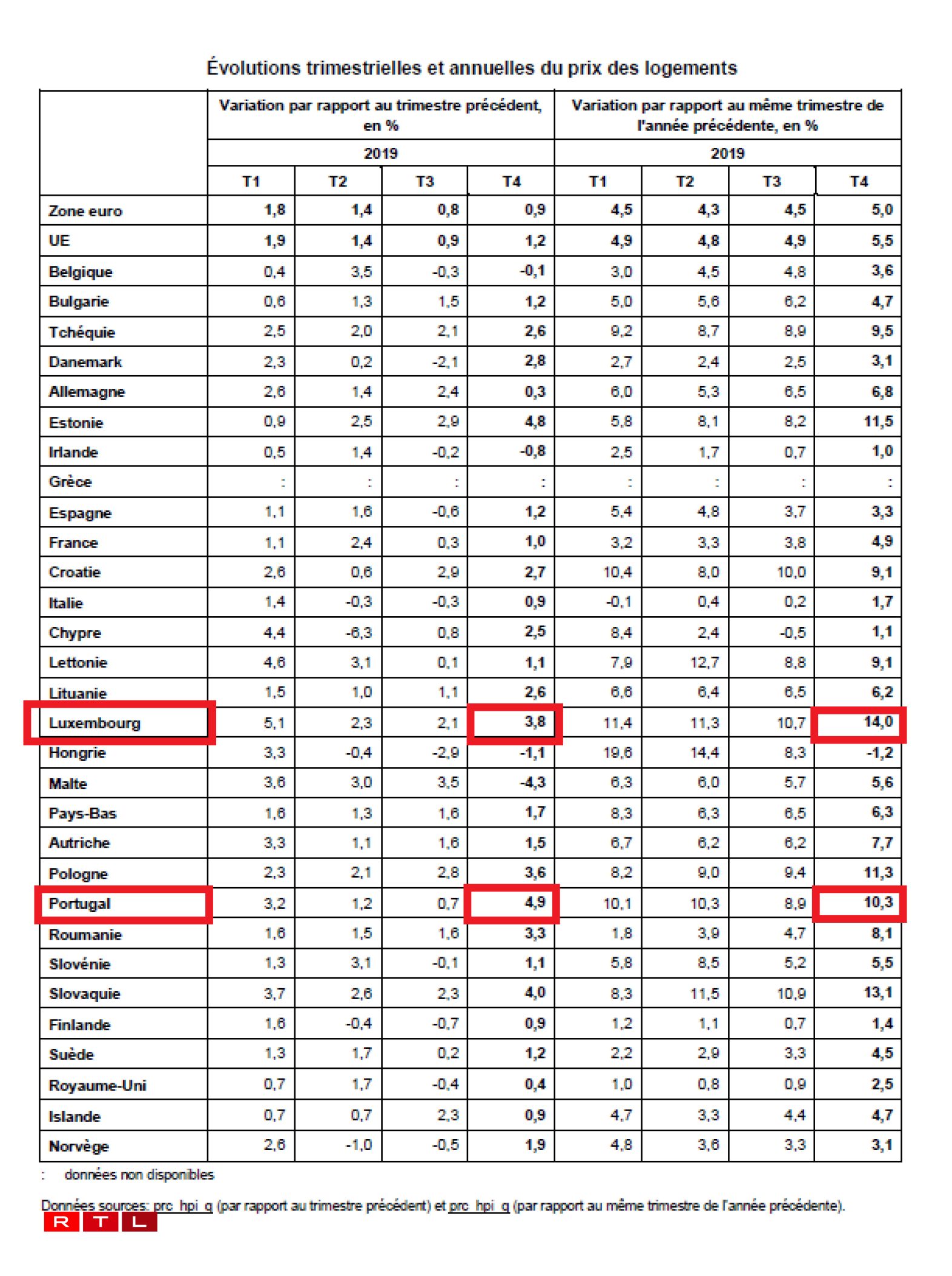 Le Luxembourg et le Portugal figurent parmi les pays membres de l’Union européenne où le prix des logements a le plus augmenté en un an. C’est ce que révèle l’étude d’Eurostat publiée mercredi.