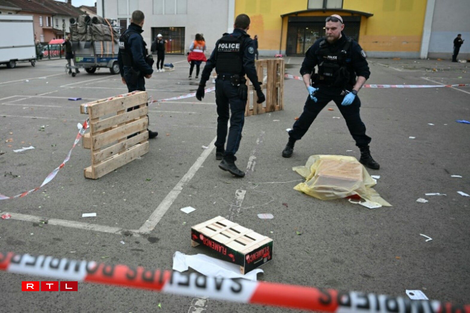 Sur la dalle du marché, des policiers municipaux tentaient de préserver des traces de sang des intempéries. Des agents de la police scientifique procédaient également à des relevés. Une dizaine de véhicules de pompiers étaient stationnés.