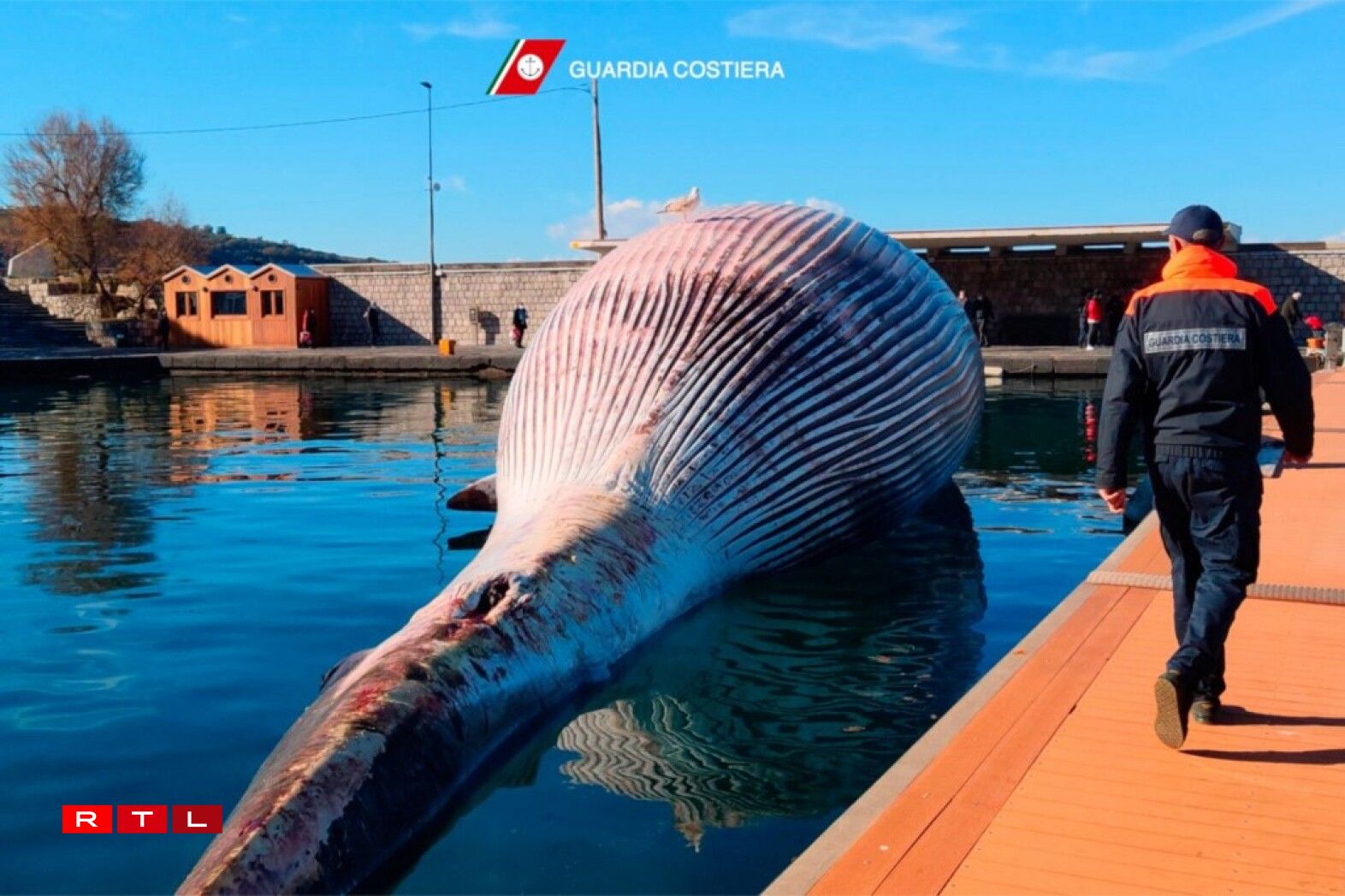 Les garde-côtes ont remorqué la baleine par voie maritime jusqu’à Naples, où elle sera autopsiée par des spécialistes en biologie marine pour tenter d’expliquer les causes de sa mort.