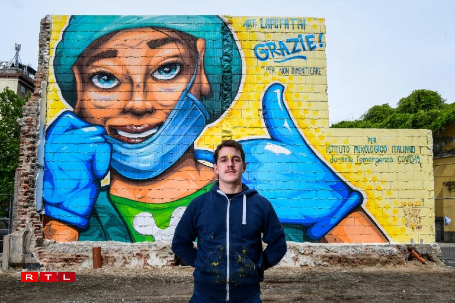 Milan, capitale de la Lombardie, région italienne la plus touchée par le coronavirus avec quelque 14.000 morts, a choisi de remercier son personnel soignant, en première ligne dans cette crise, en commandant une gigantesque fresque en leur honneur.