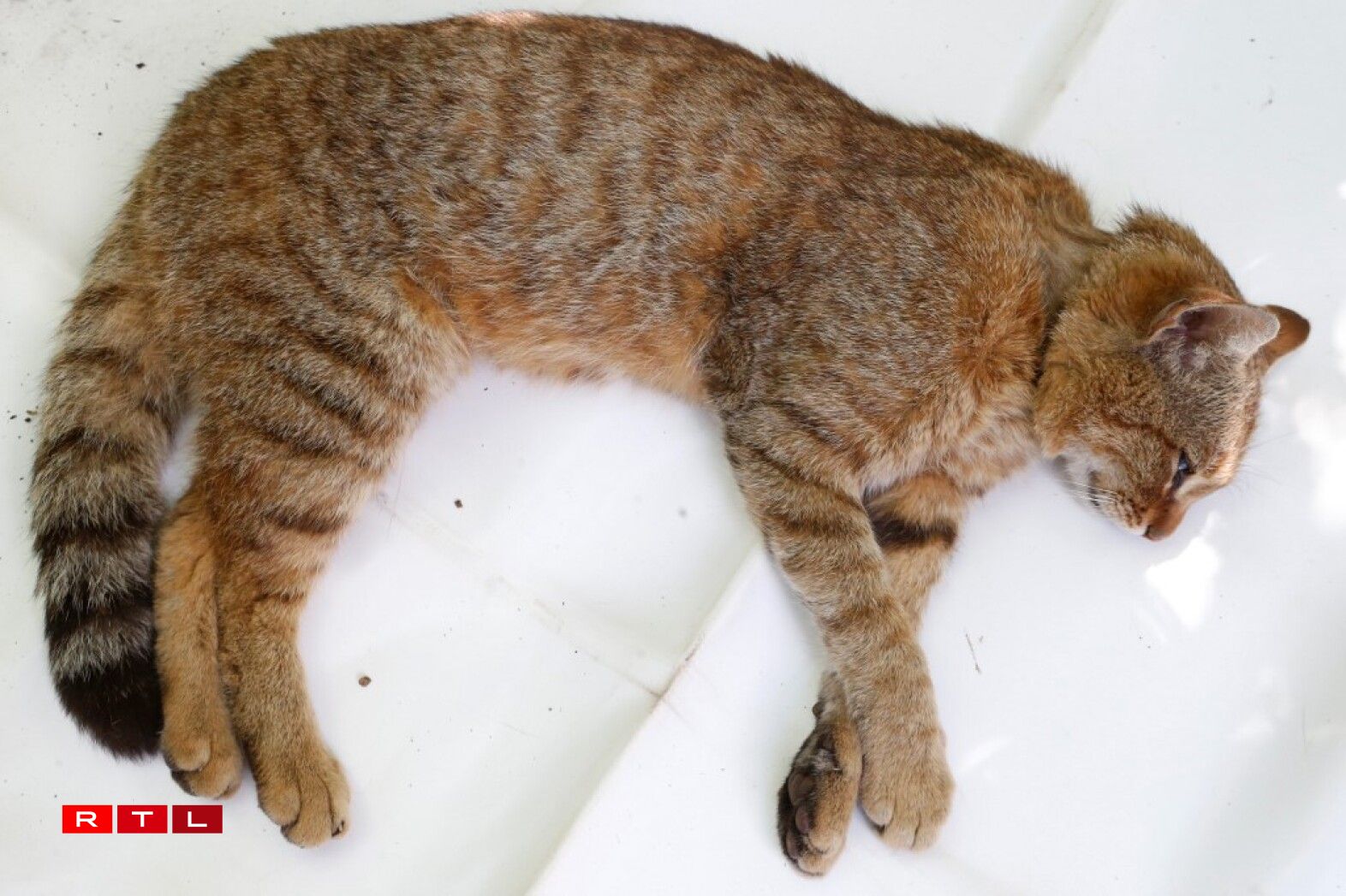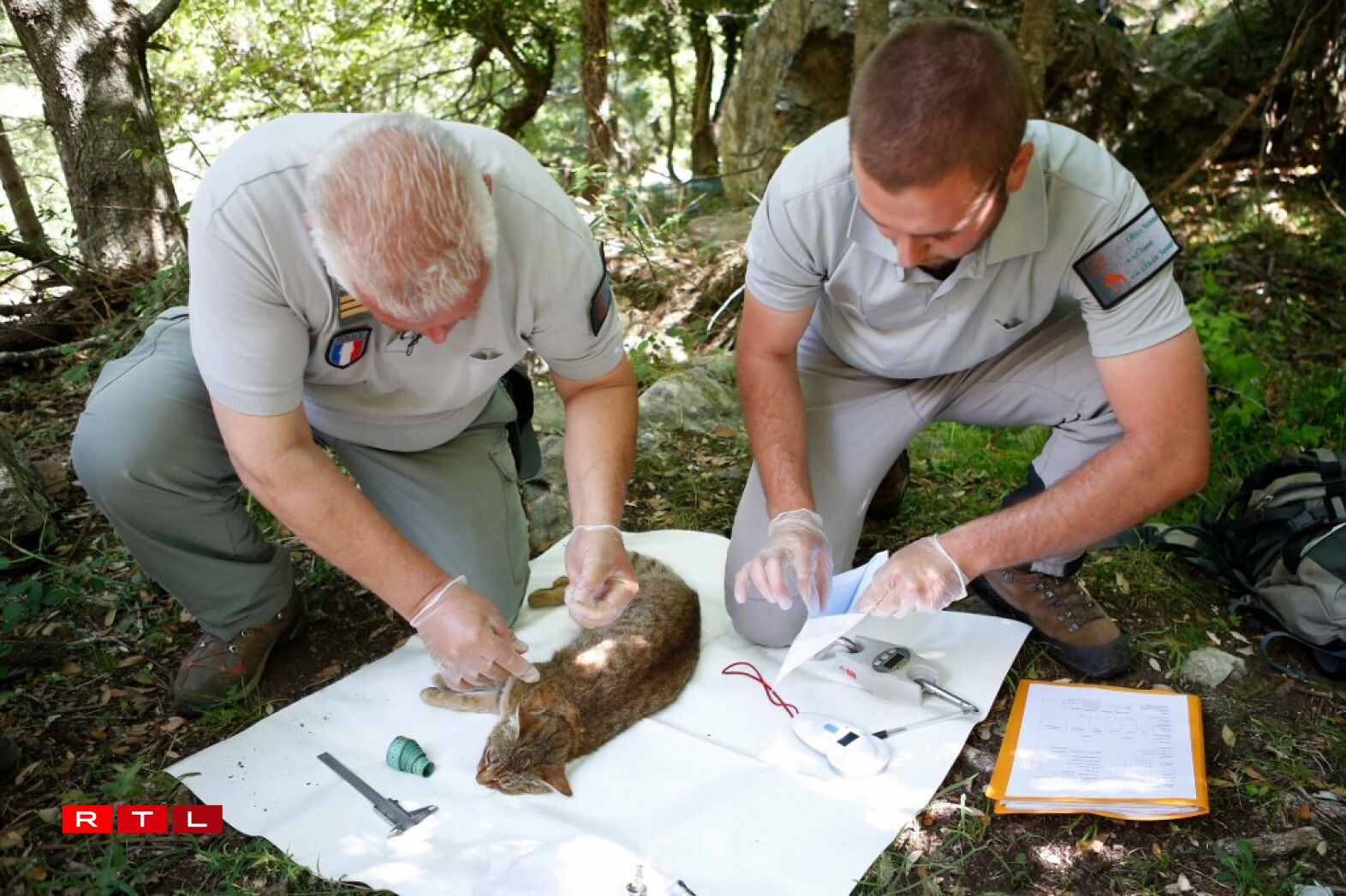 Une fois endormi, le félin au poil soyeux, à l’aspect très proche du classique chat domestique pour les non-initiés, est étudié par les deux agents: 90 cm de la tête au bout de la queue, pavillons des oreilles “très larges”, courtes moustaches, canines “très développées”. “Tarses des pattes postérieures toujours très noirs”, “couleur rousse-rouille sur le ventre”, densité de poil très importante qui le préserve des puces, poux ou tiques. Queue “avec entre 2 et 4 anneaux et toujours un manchon terminal bien noir”, “zébrures sur les pattes antérieures très caractéristiques”.