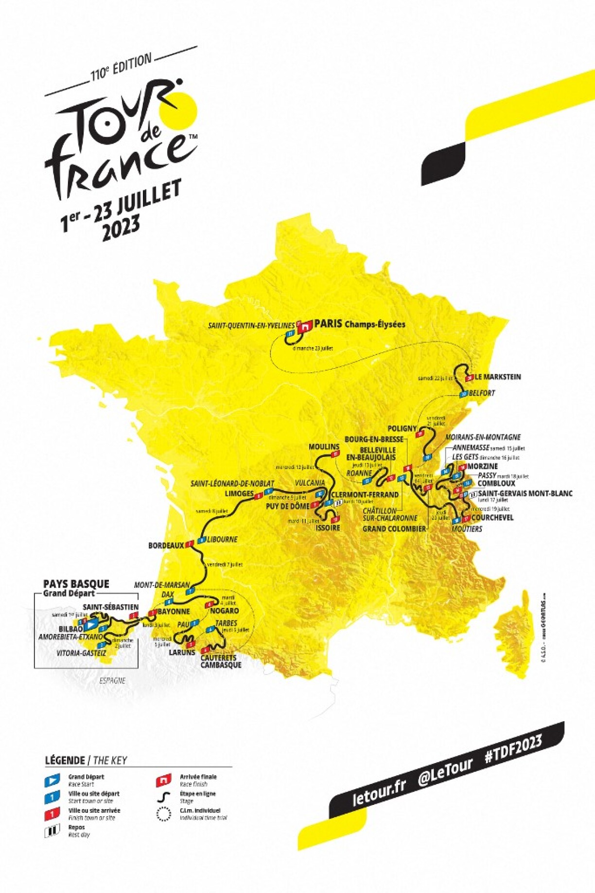 Un an après le Danemark, le départ de Bilbao, le 1er juillet 2023, marquera le 25e lancement de l’étranger en 110 éditions du Tour de France. Ce sera la deuxième fois que la Grande Boucle s’élancera de l’Espagne après le départ en 1992 de Saint-Sébastien, déjà au Pays basque. Depuis le premier coup d’envoi donné de l’étranger, à Amsterdam (Pays-Bas) en 1954, dix pays ont accueilli le Grand Départ du Tour. En 2024, ça pourrait être le tour de l’Italie. Après trois étapes en Espagne en 2023, la troisième arrivant à Bayonne, le Tour se poursuivra ensuite en intégralité dans l’Hexagone où il visitera six régions et 23 départements.